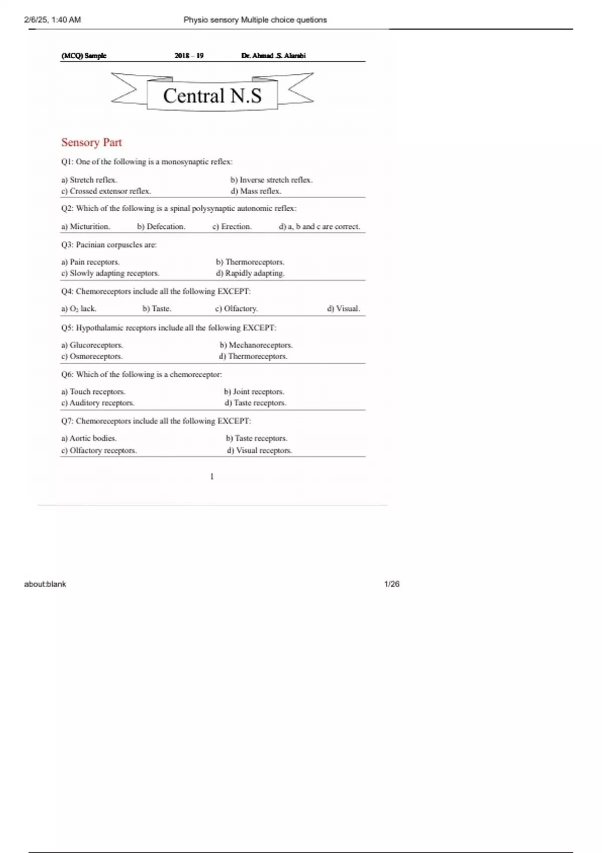 (MCQ) Sample 2018 – 19 Dr