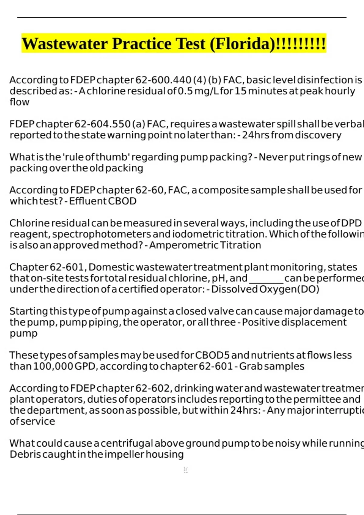 Wastewater Practice Test (Florida)!!!!!!!!!