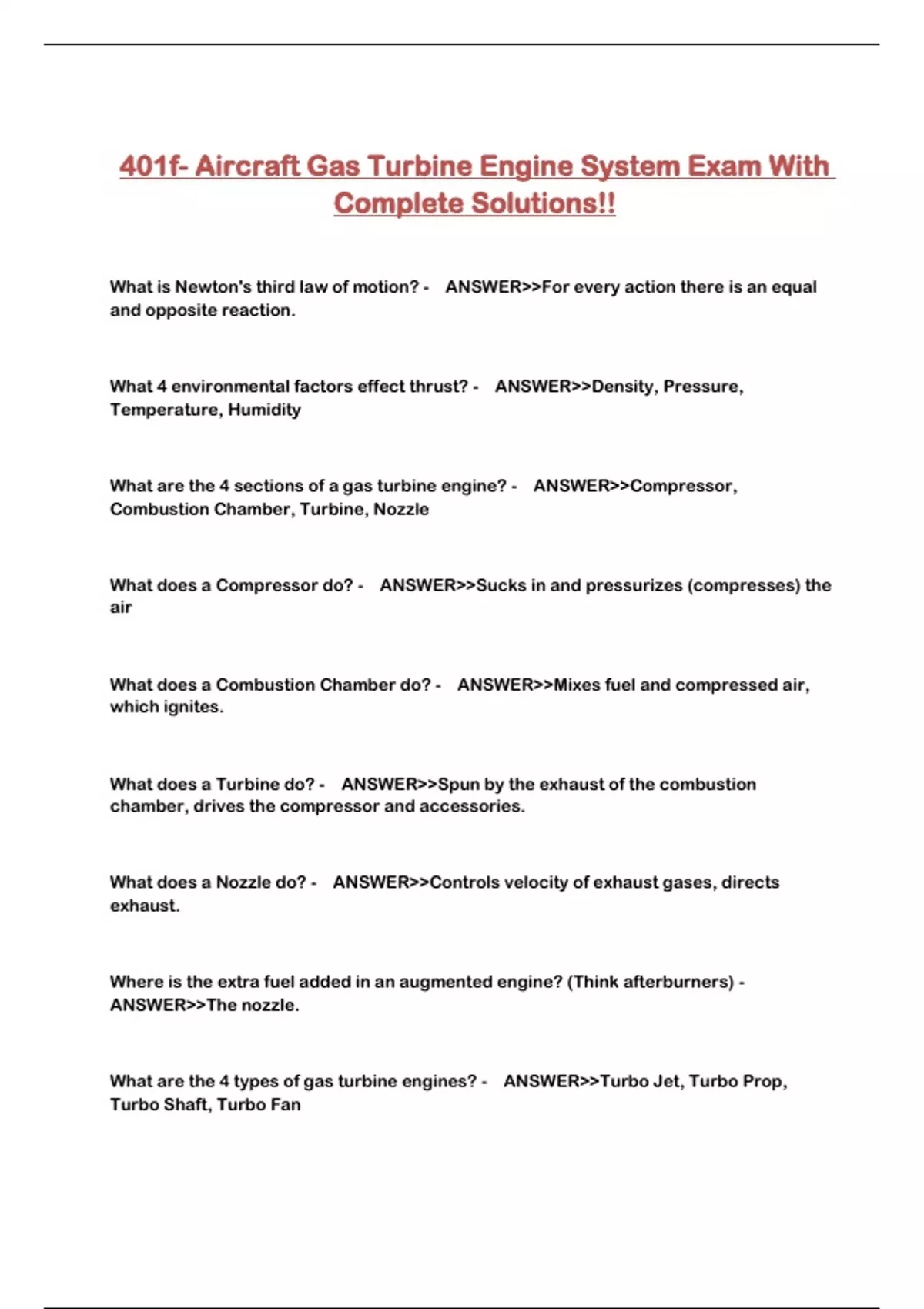What are the 4 types of gas turbine engines? - ANSWER>>Turbo Jet, Turbo Prop,