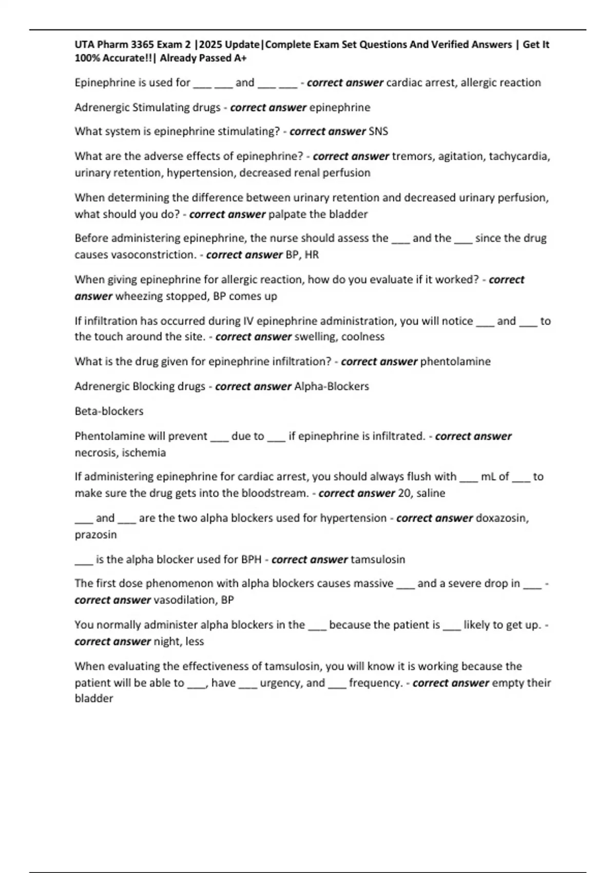 , UTA Pharm 3365 Exam 2 |2025 Update|Complete Exam Set Questions And Verified Answers | Get It
