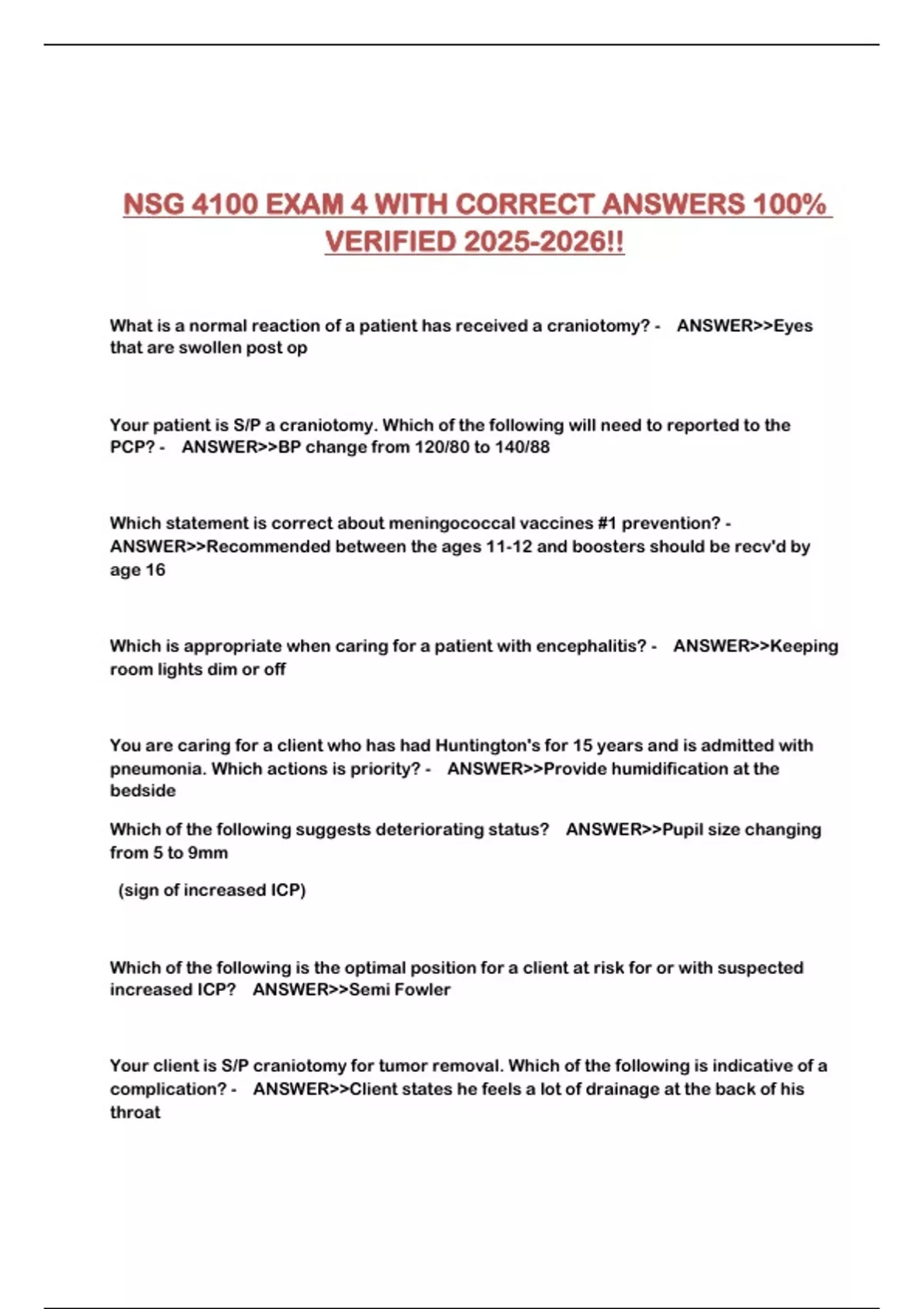 NSG 4100 EXAM 4 WITH CORRECT ANSWERS 100%