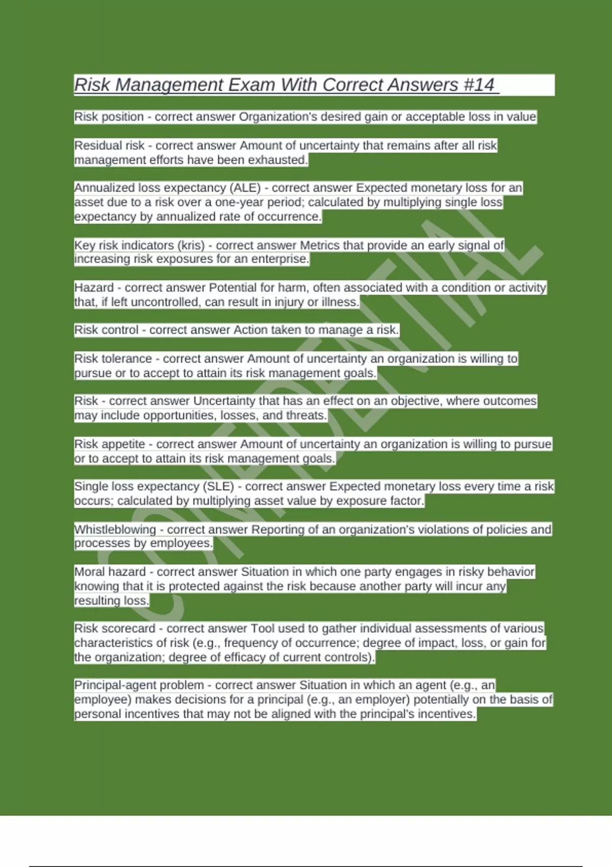 Residual risk - correct answer Amount of uncertainty that remains after all risk
