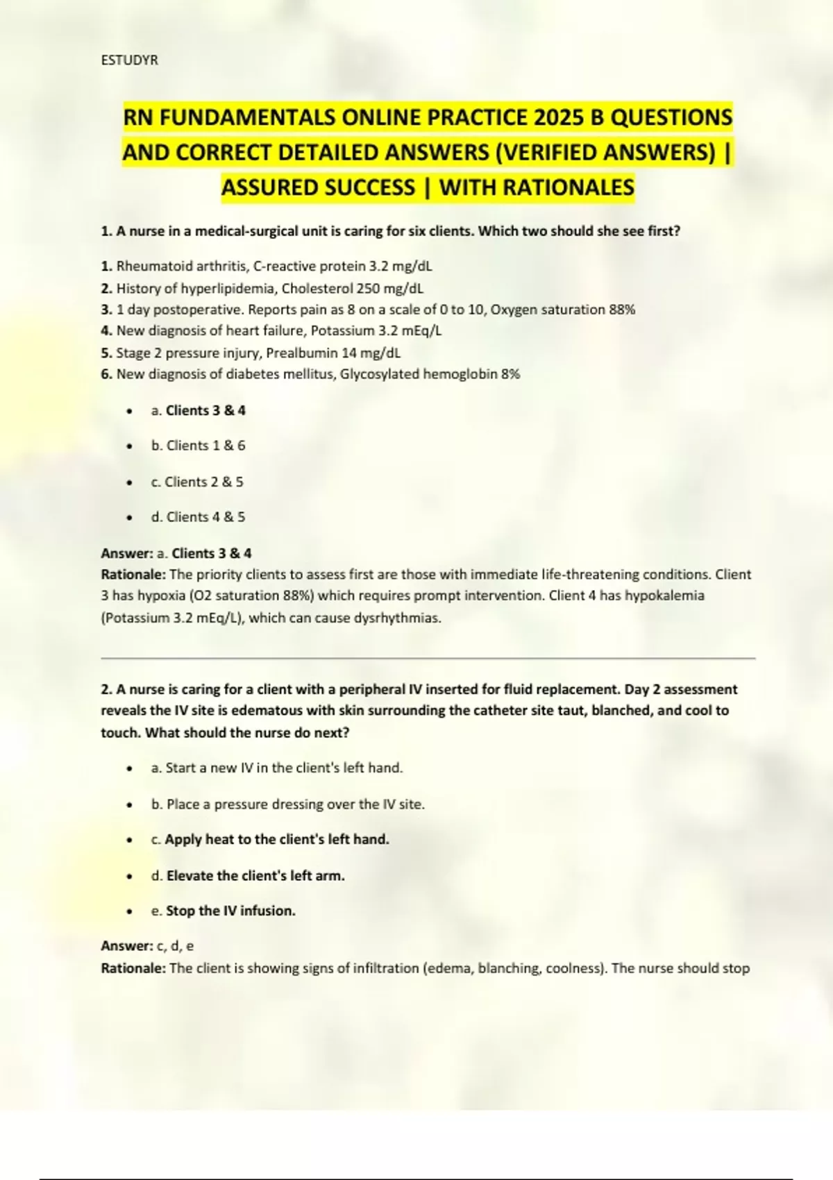 RN FUNDAMENTALS ONLINE PRACTICE 2025 B QUESTIONS