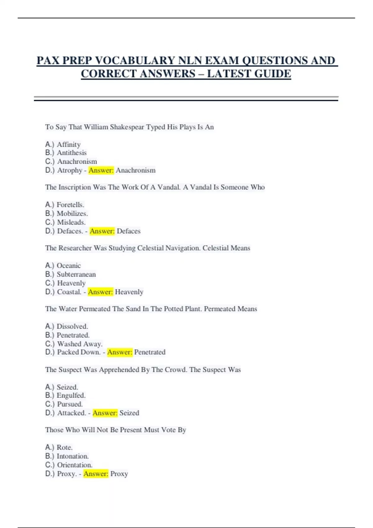 CORRECT ANSWERS – LATEST GUIDE
