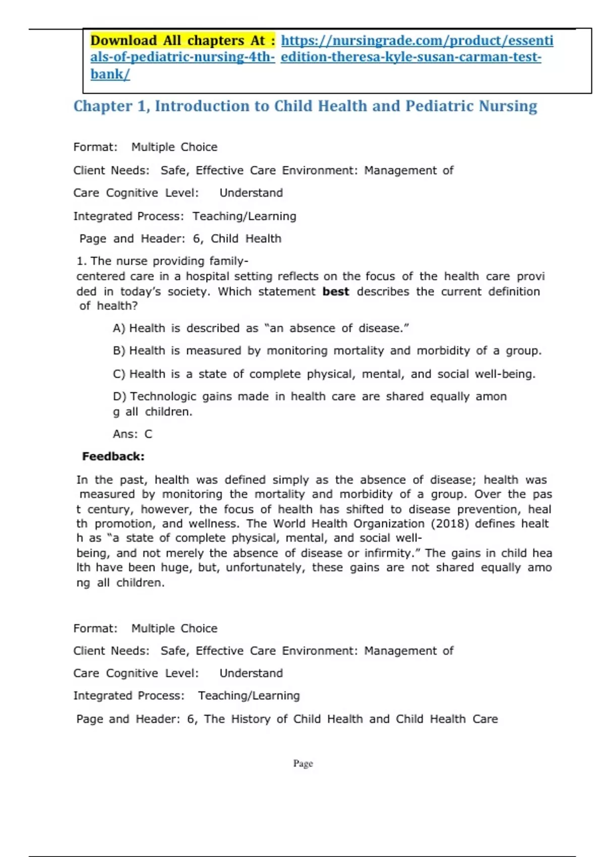 Chapter 1, Introduction to Child Health and Pediatric Nursing