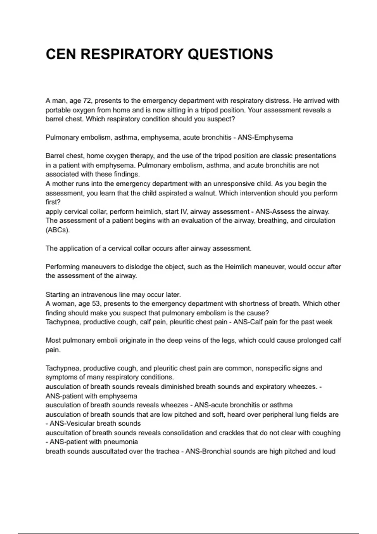 Pulmonary embolism, asthma, emphysema, acute bronchitis - ANS-Emphysema