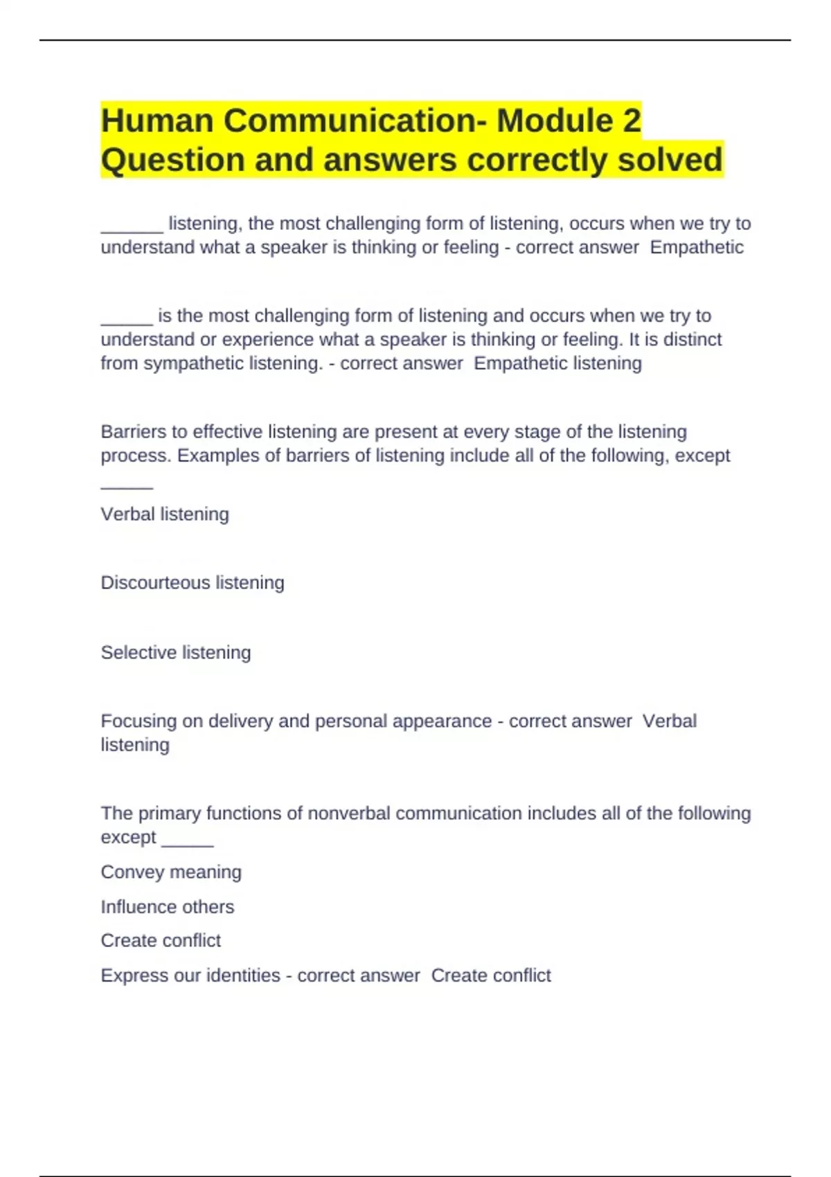 from sympathetic listening. - correct answer Empathetic listening