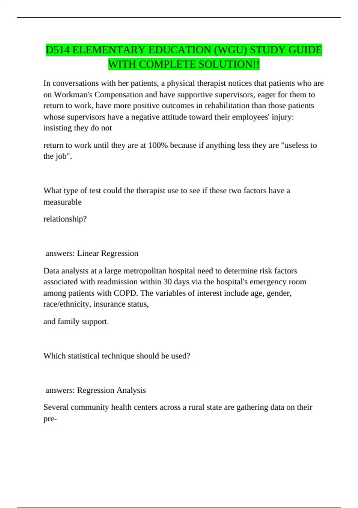 D514 ELEMENTARY EDUCATION (WGU) STUDY GUIDE