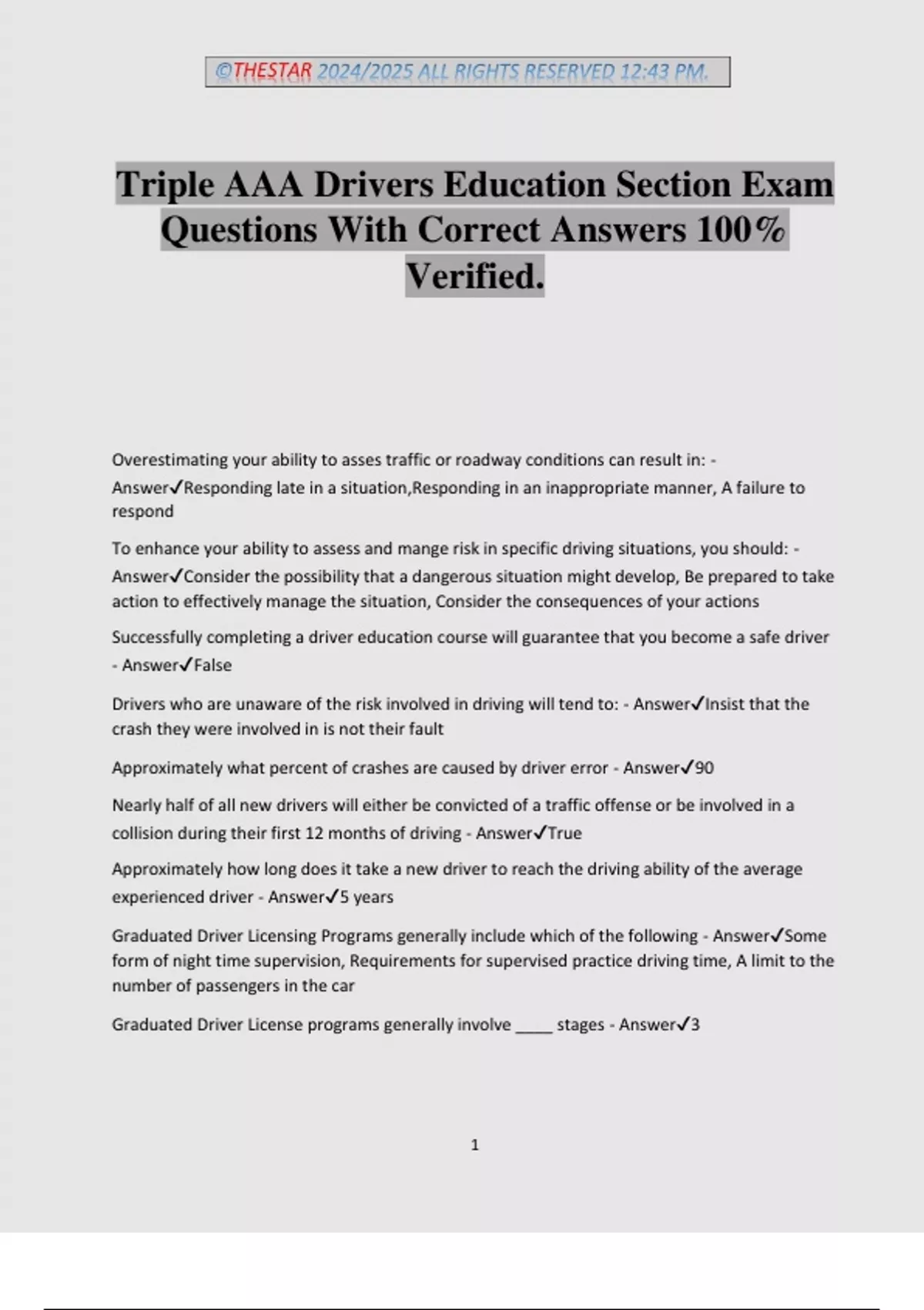 Triple AAA Drivers Education Section Exam