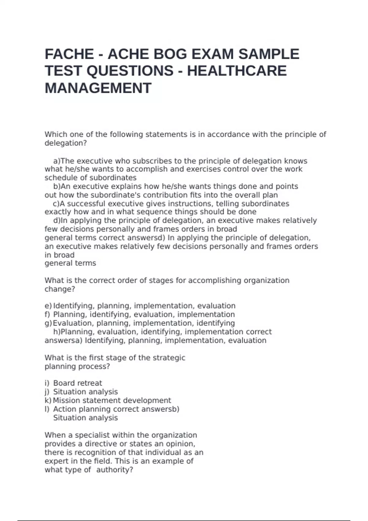 TEST QUESTIONS - HEALTHCARE