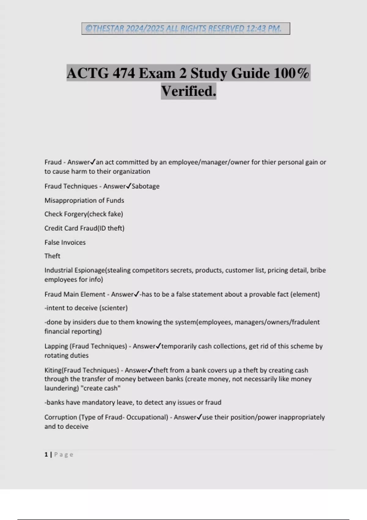 Asset Misappropriation (Type of Fraud-Occupational) - Answer✔stealing cash, assets, inventory,