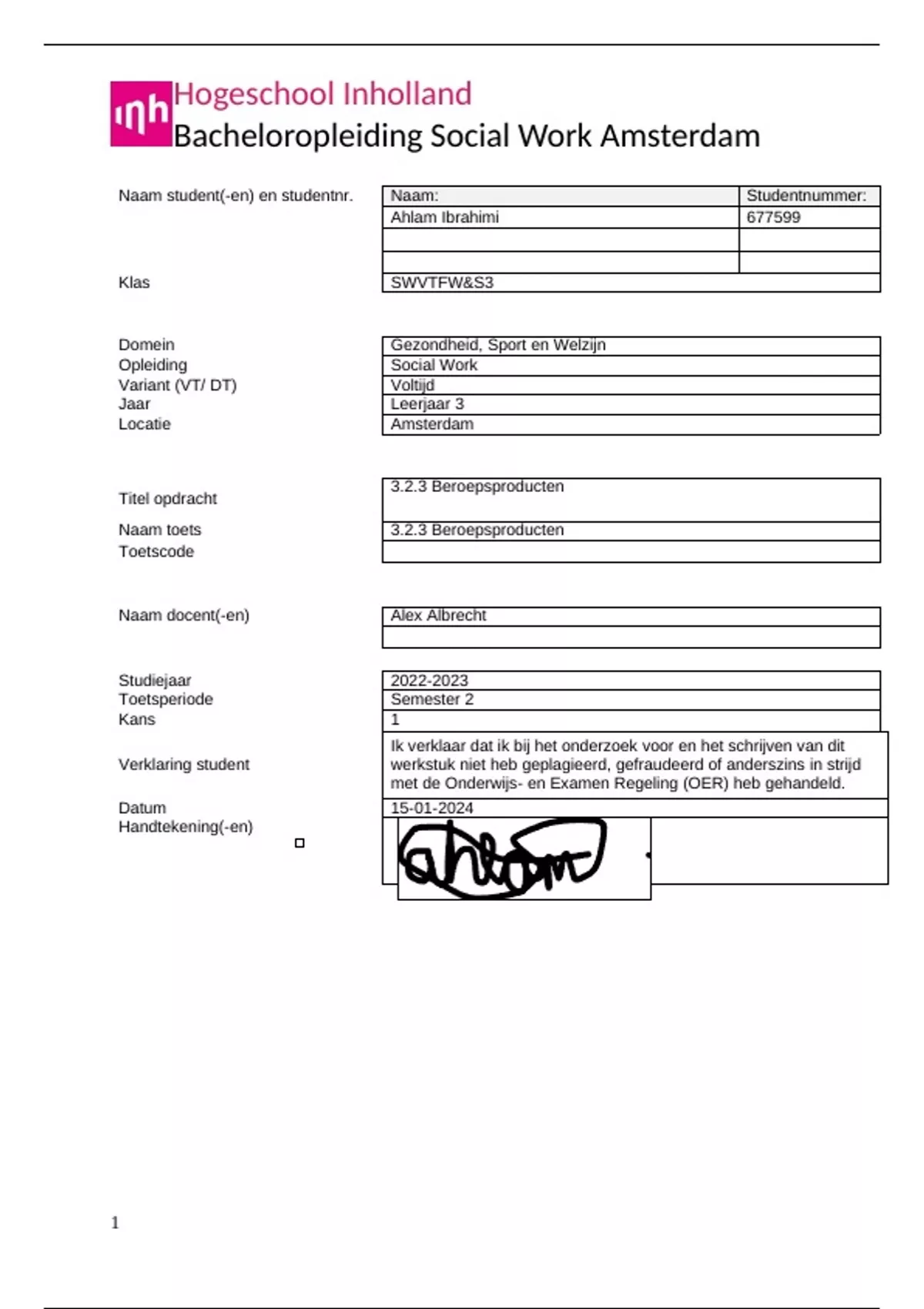 Tentamen van 29 pagina's voor het vak 3.2.3 Beroepsproducten aan de InHolland (Behaald met een 8,9)
