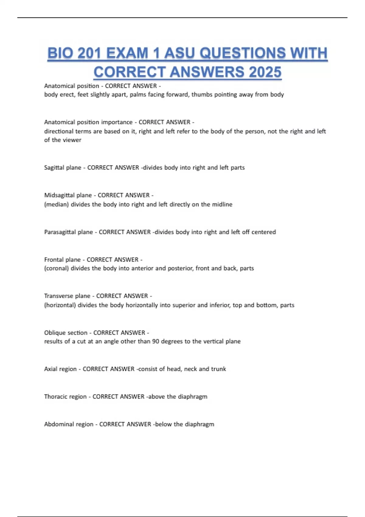 CORRECT ANSWERS 2025