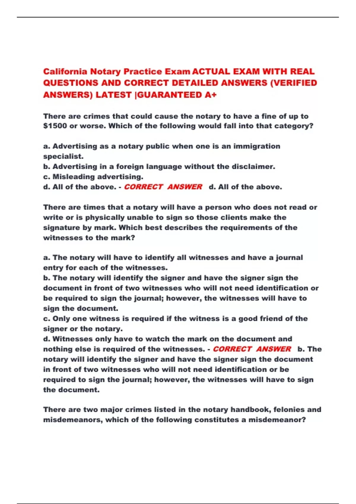 d. All of the above are true. - CORRECT ANSWER c. The notary has