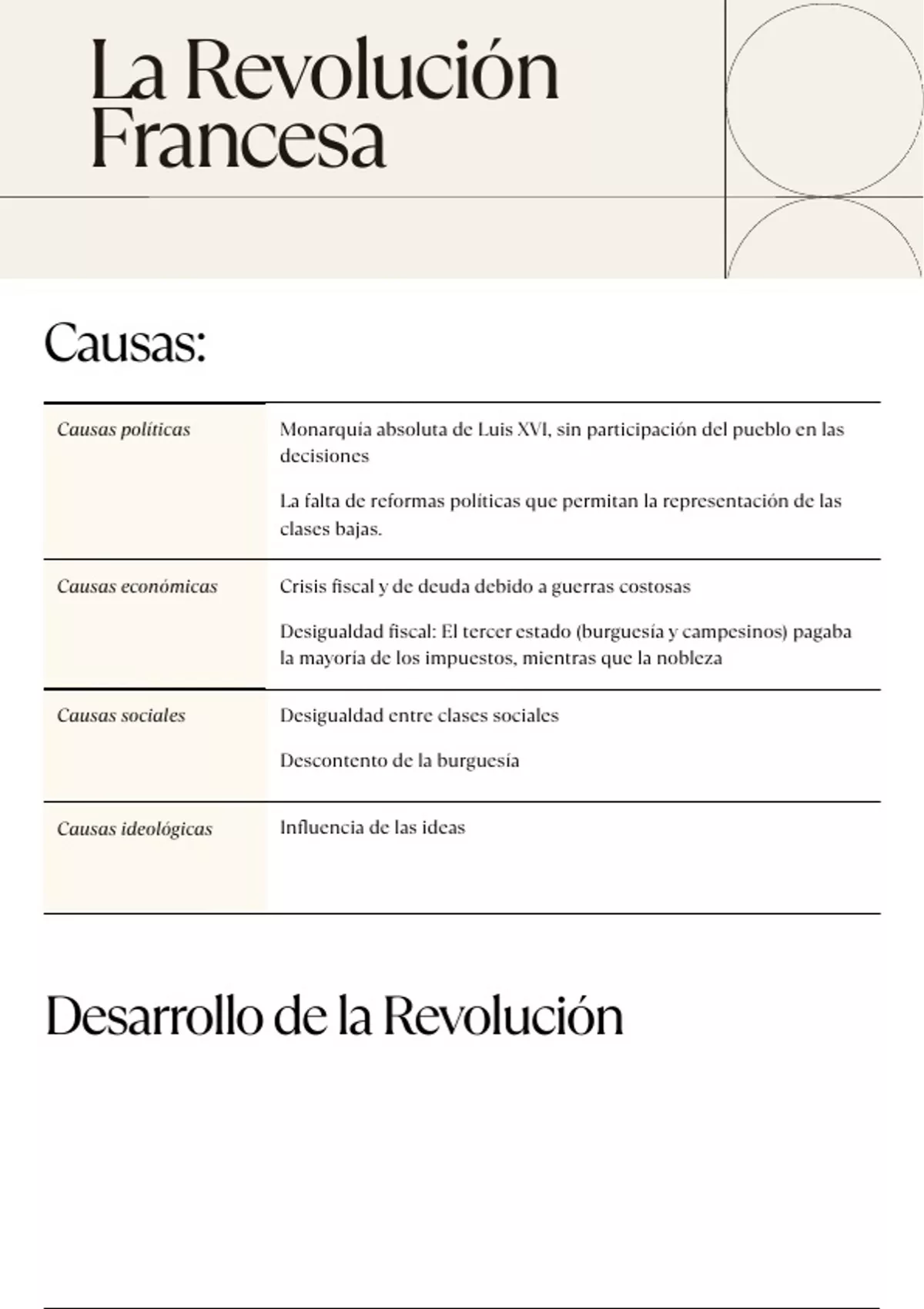 Causas políticas Monarquía absoluta de Luis XVI, sin participación del pueblo en las