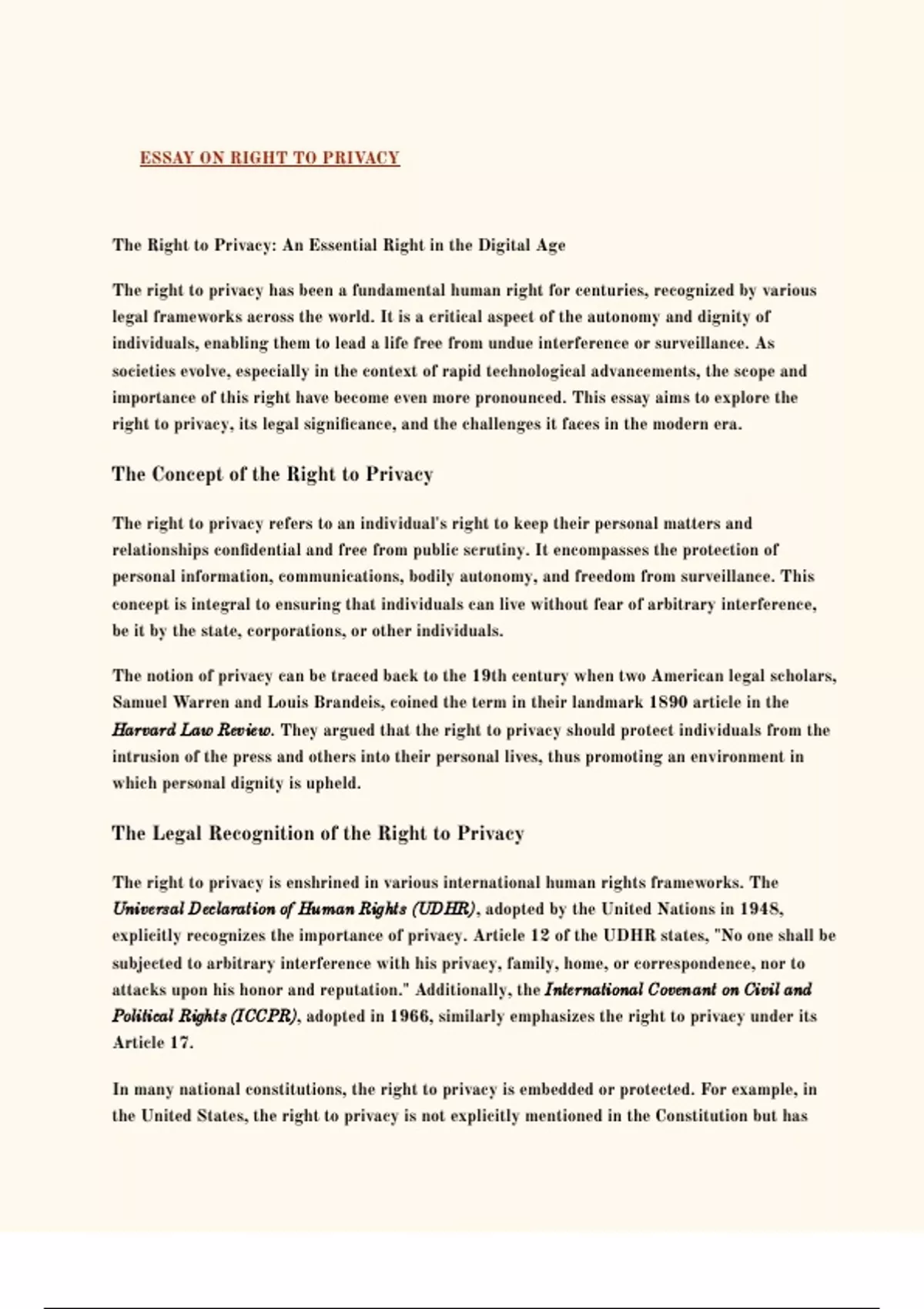 SUMMARY ON RIGHT TO PRIVACY