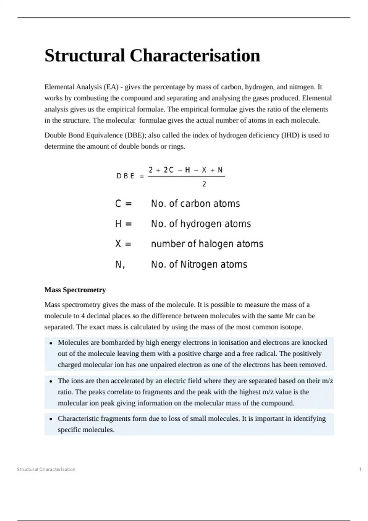 Elemental Analysis (EA) - gives the percentage by mass of carbon, hydrogen, and nitrogen. It