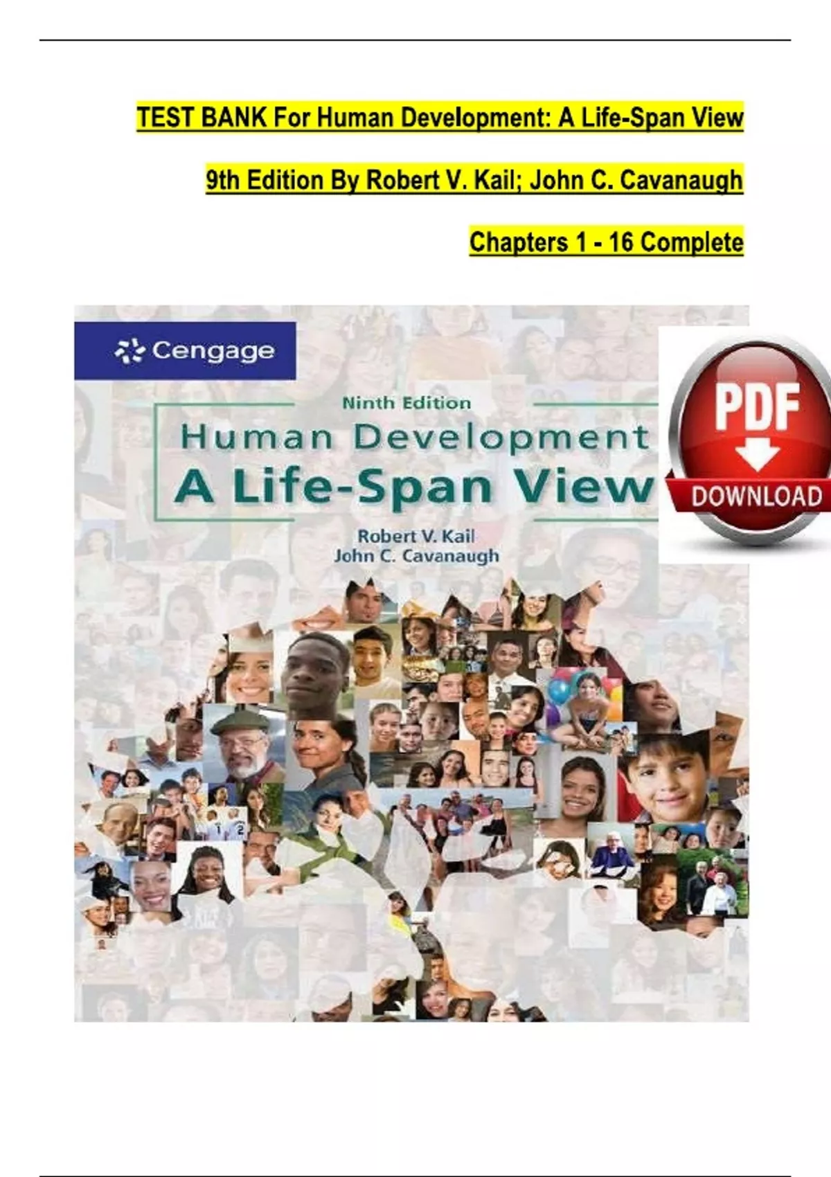 TEST BANK For Human Development: A Life-Span View, (MindTap Course List) 9th Edition By Robert V. Kail; John C. Cavanaugh, Verified Chapters 1 - 16, Complete Newest Version