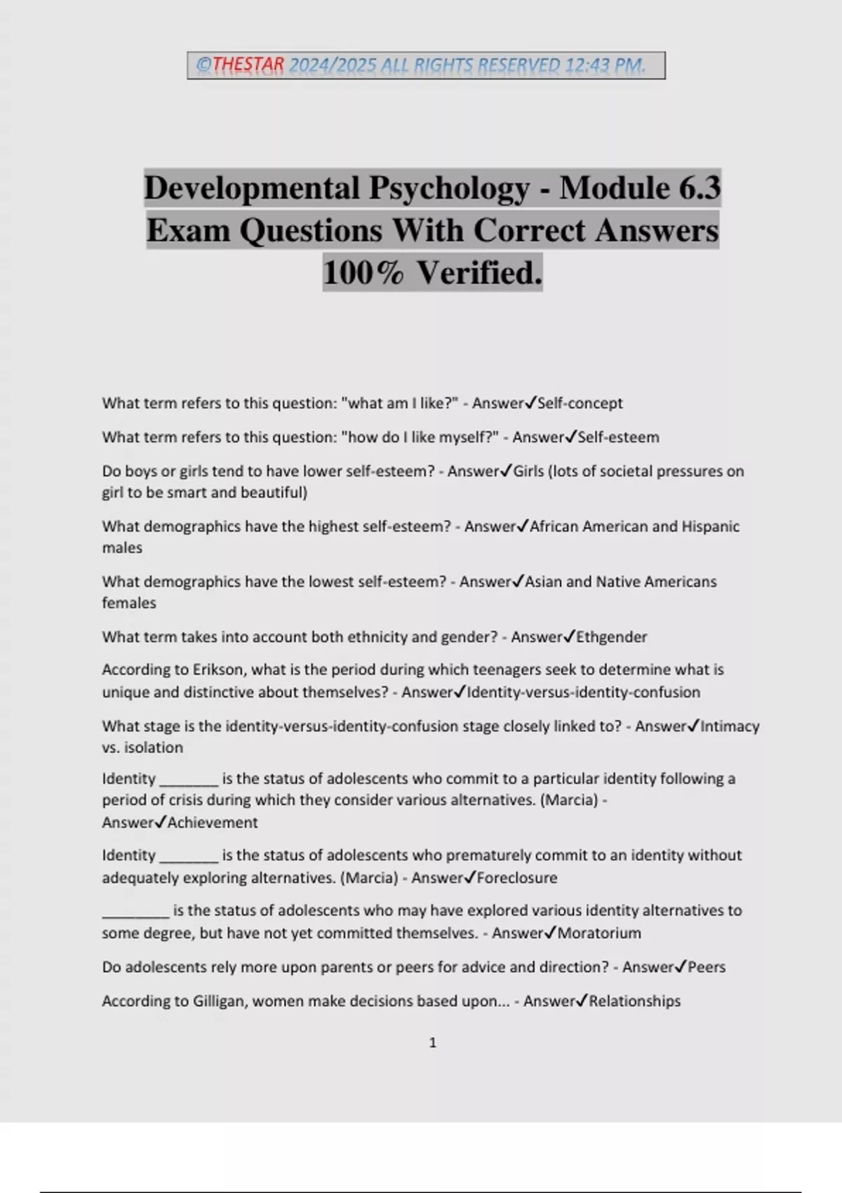 What demographics have the highest self-esteem? - Answer✔African American and Hispanic