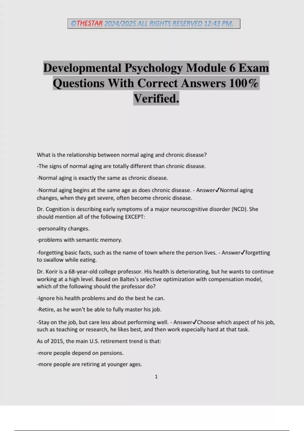 -Normal aging begins at the same age as does chronic disease. - Answer✔Normal aging