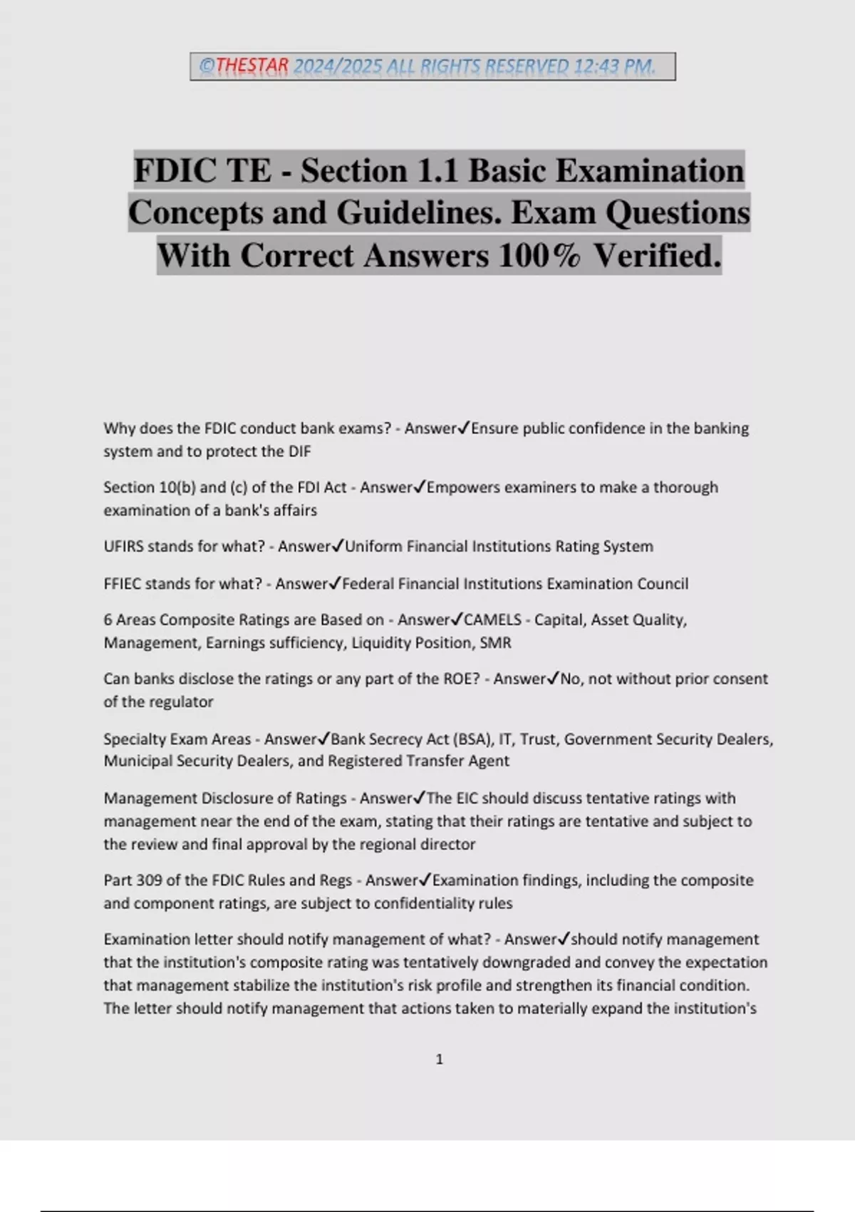 FDIC TE - Section 1.1 Basic Examination