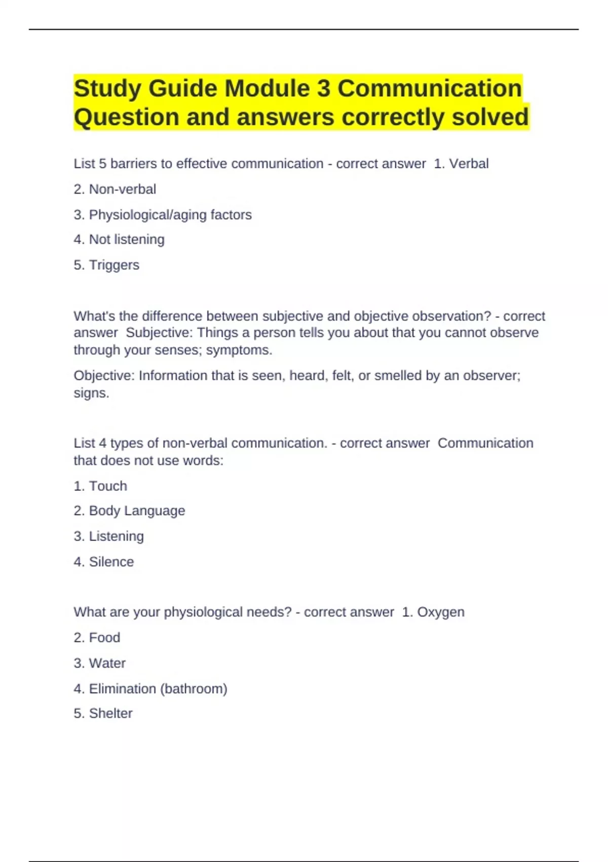 List 5 barriers to effective communication - correct answer 1. Verbal