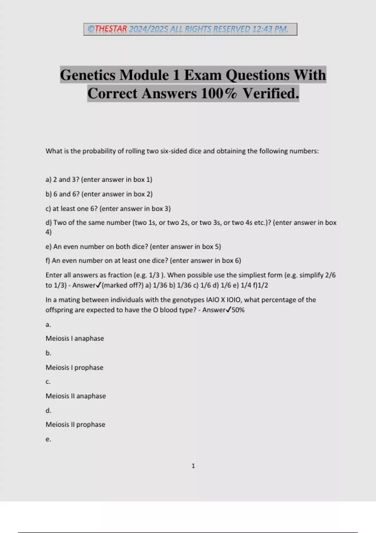 Crossing over (genetic recombination) occurs in... - Answer✔b