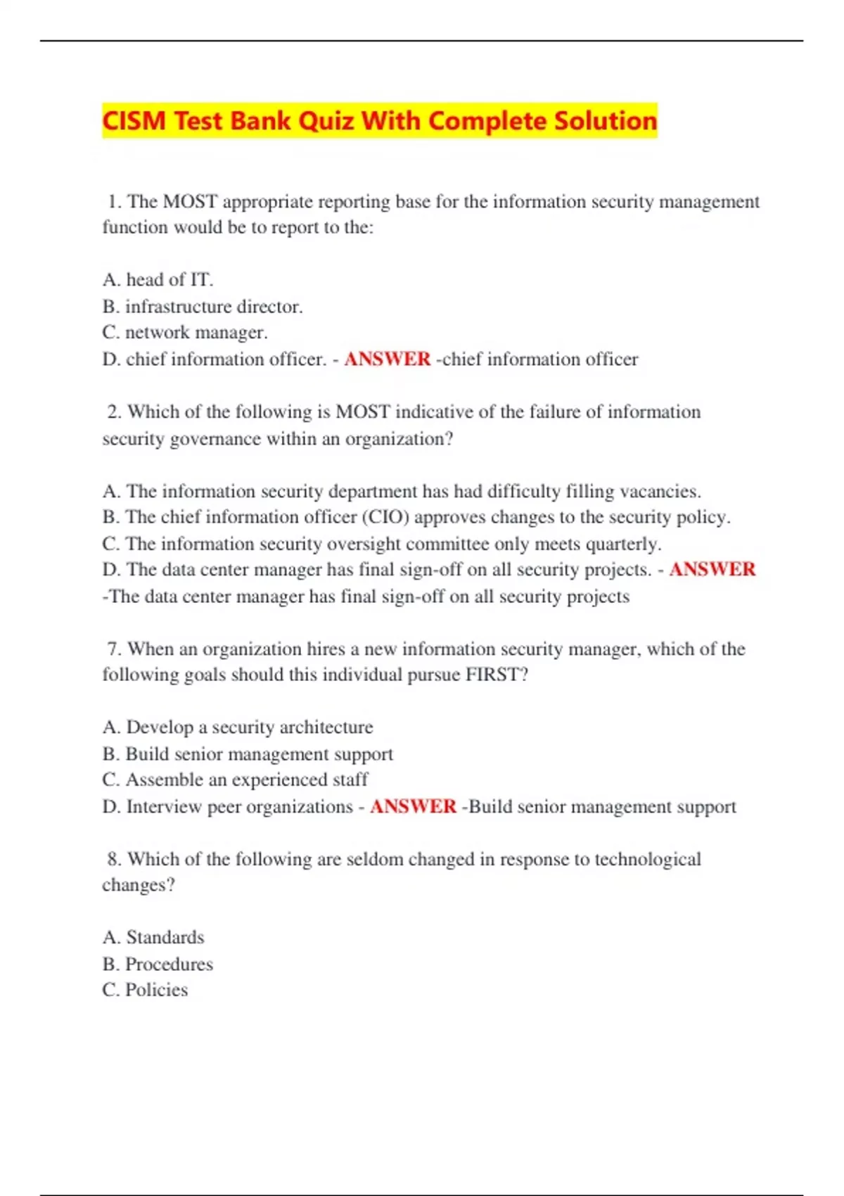 D. Develop an information security strategy paper. - ANSWER -Develop an