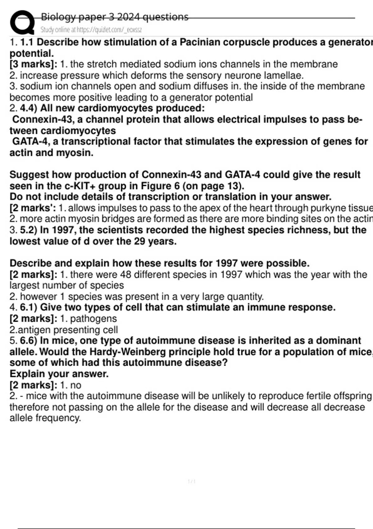 1. 1.1 Describe how stimulation of a Pacinian corpuscle produces a generator