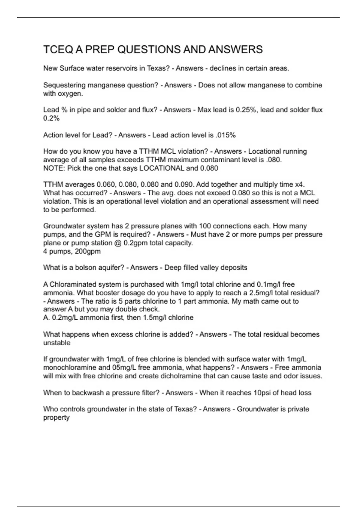 TCEQ A PREP QUESTIONS AND ANSWERS