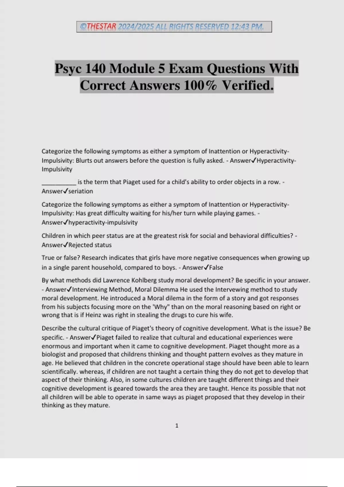 Psyc 140 Module 5 Exam Questions With