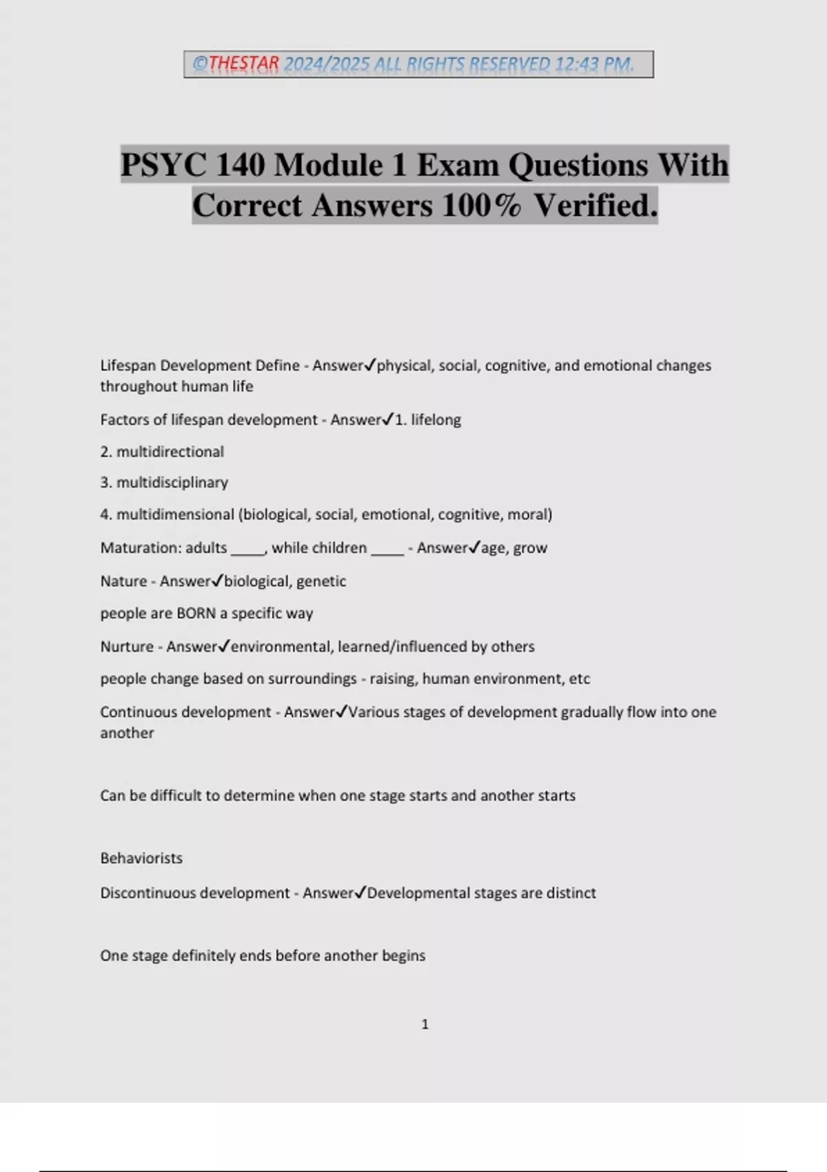 PSYC 140 Module 1 Exam Questions With