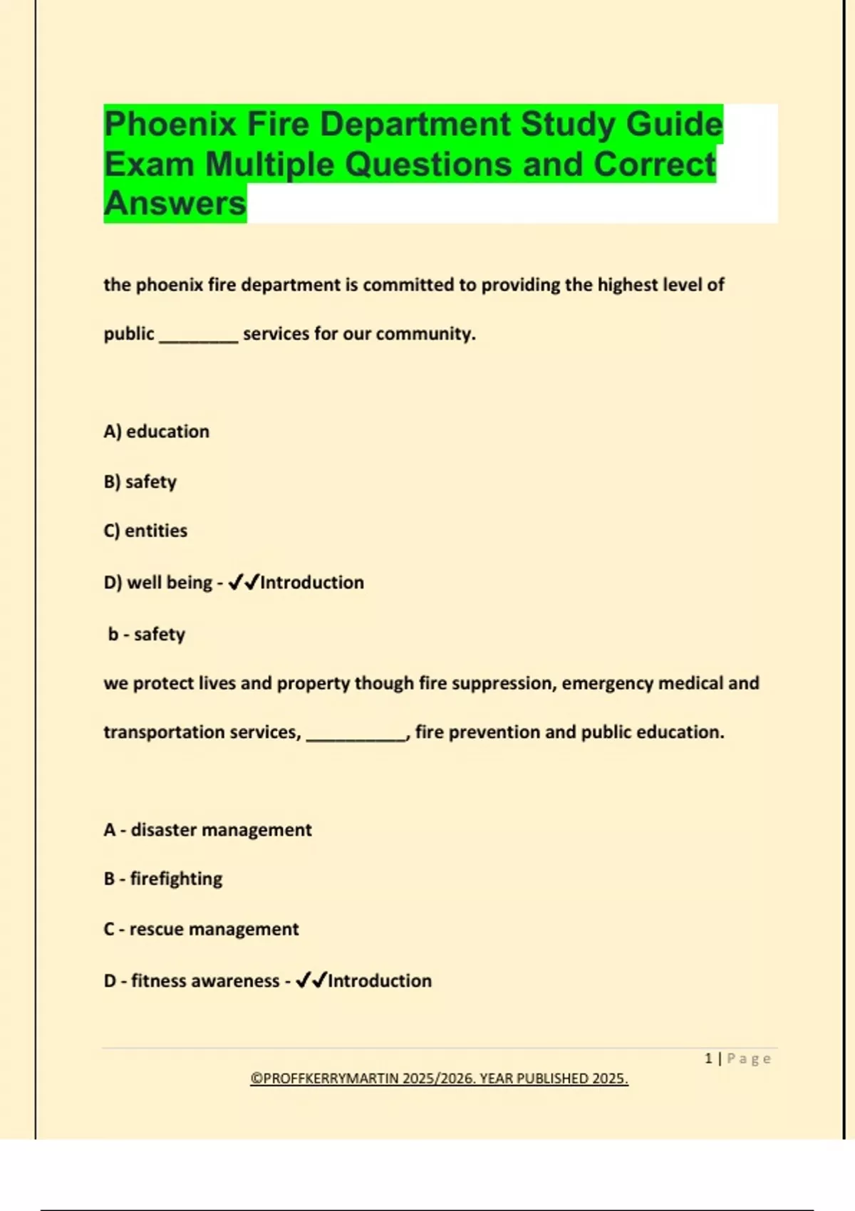 Phoenix Fire Department Study Guide Exam Multiple Questions and Correct Answers