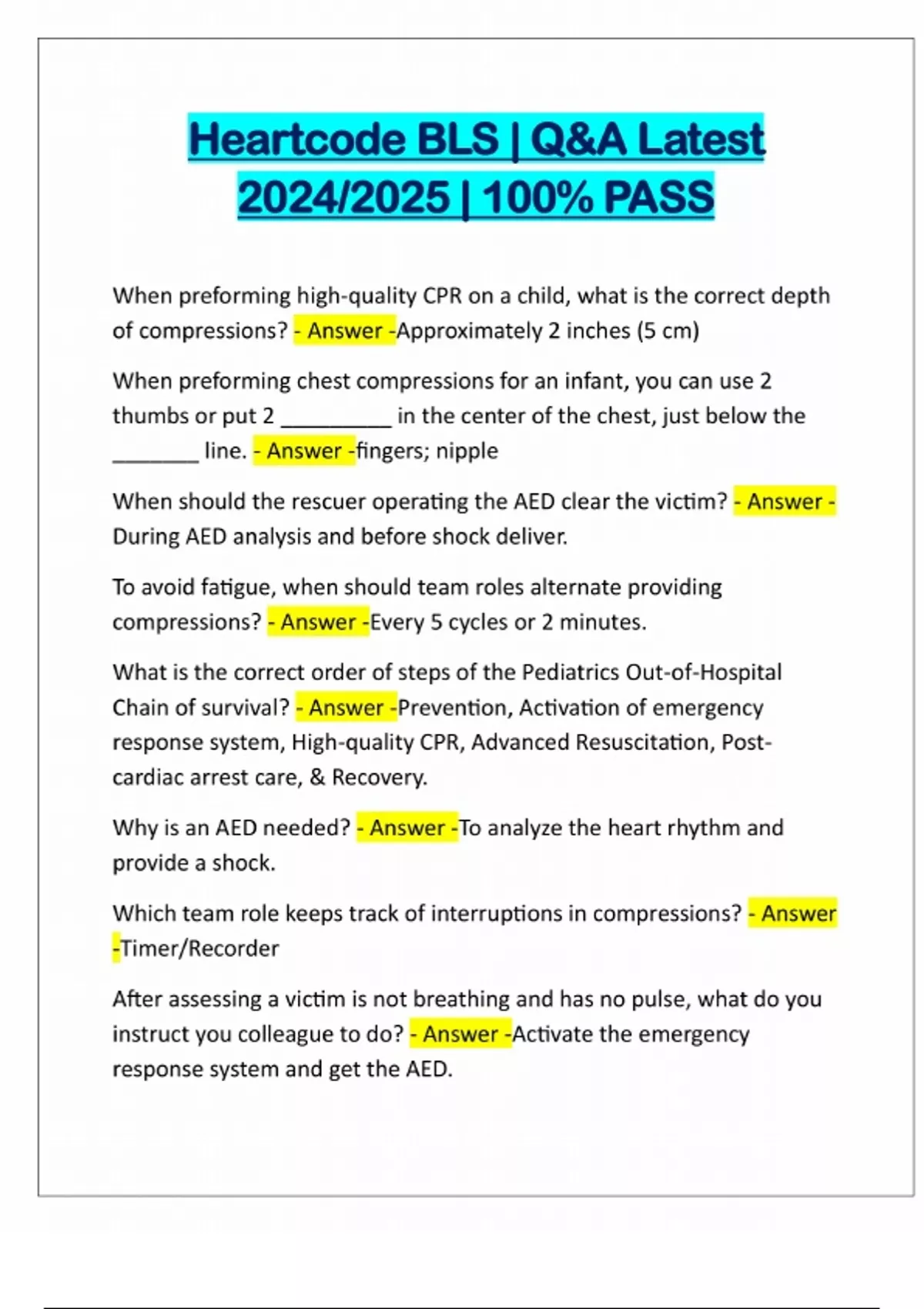 Heartcode BLS | Q&A Latest 2024/2025 | 100% PASS