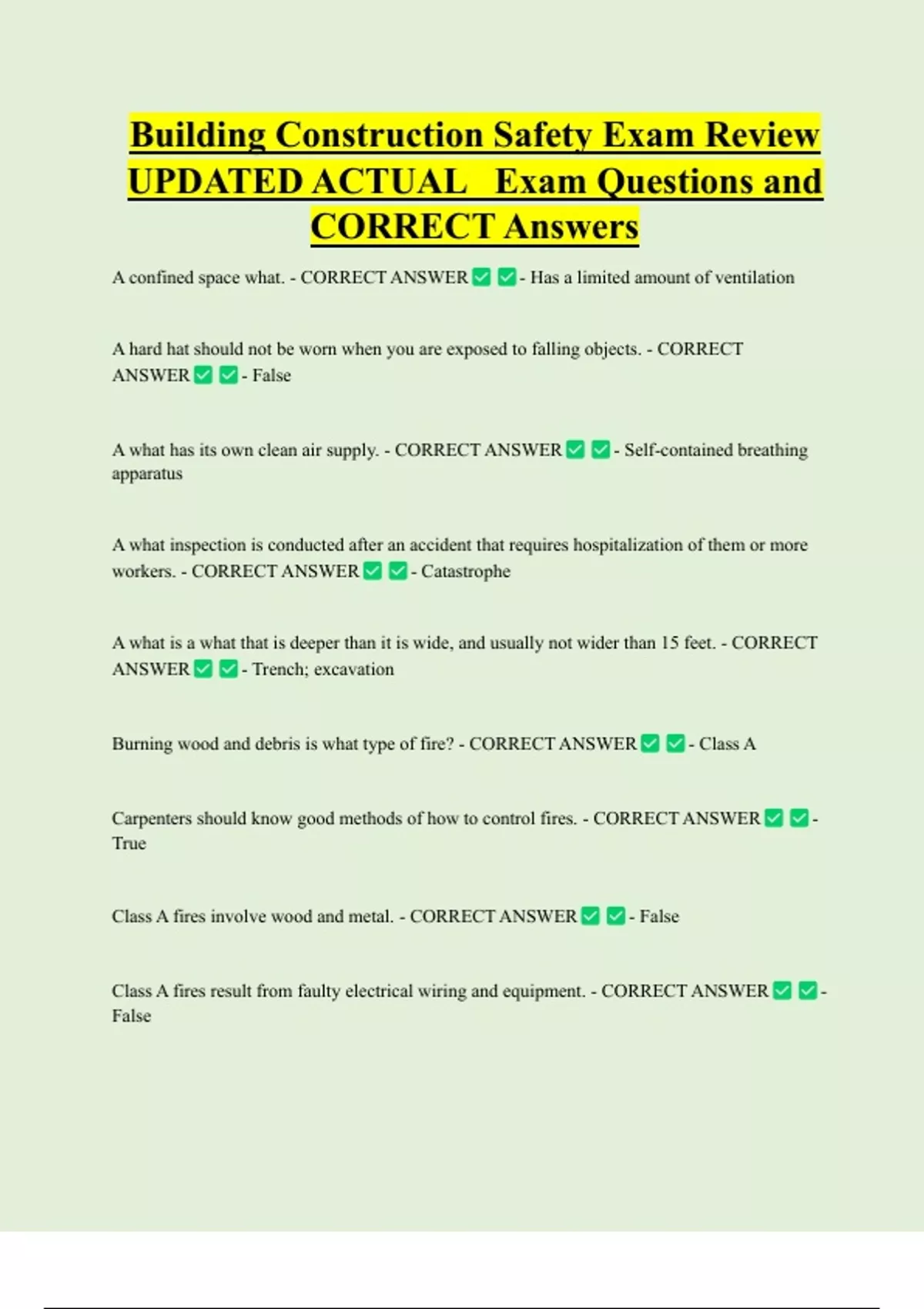 Carpenters should know good methods of how to control fires. - CORRECT ANSWER -