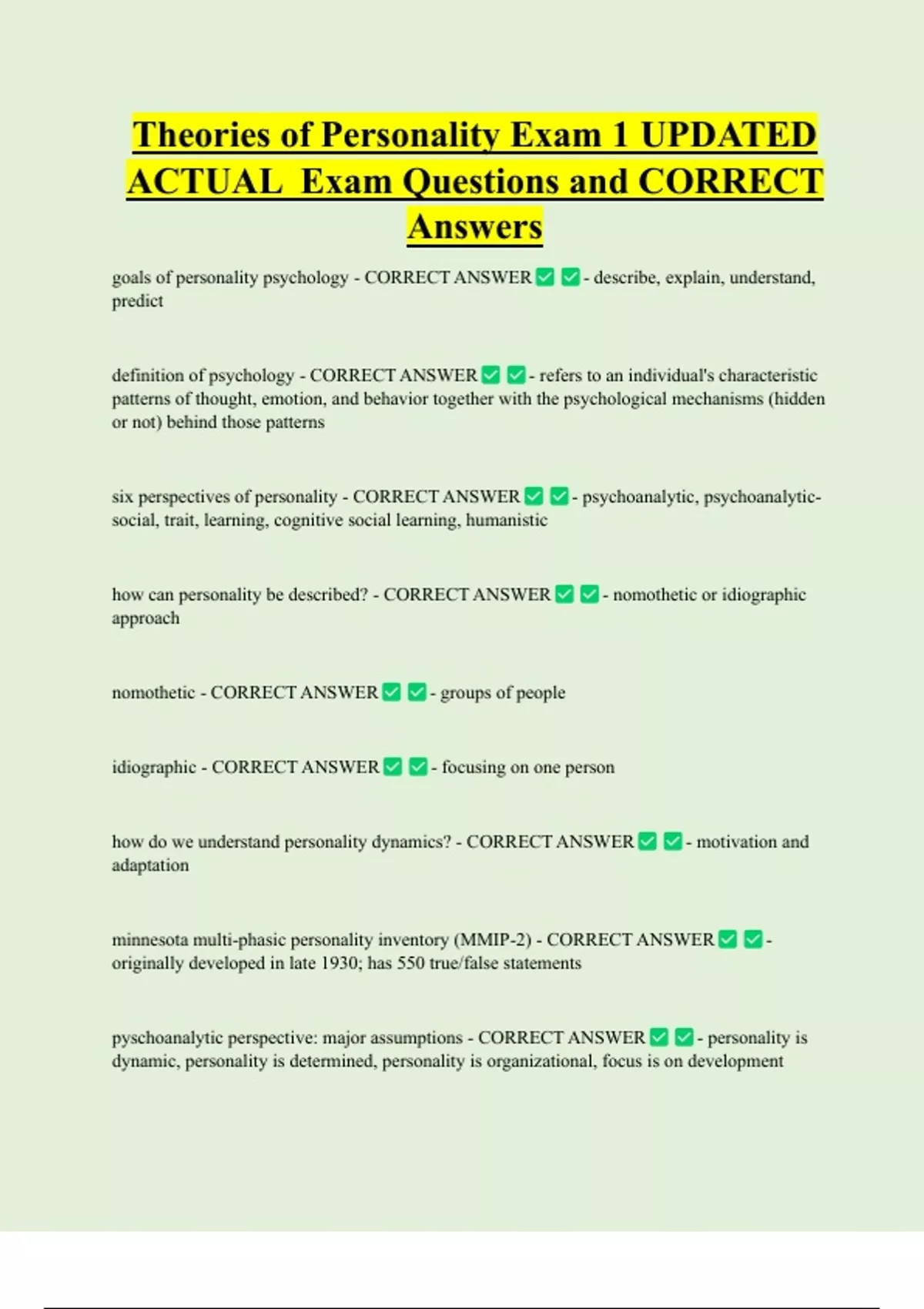 Theories of Personality Exam 1 UPDATED ACTUAL Exam Questions and CORRECT Answers