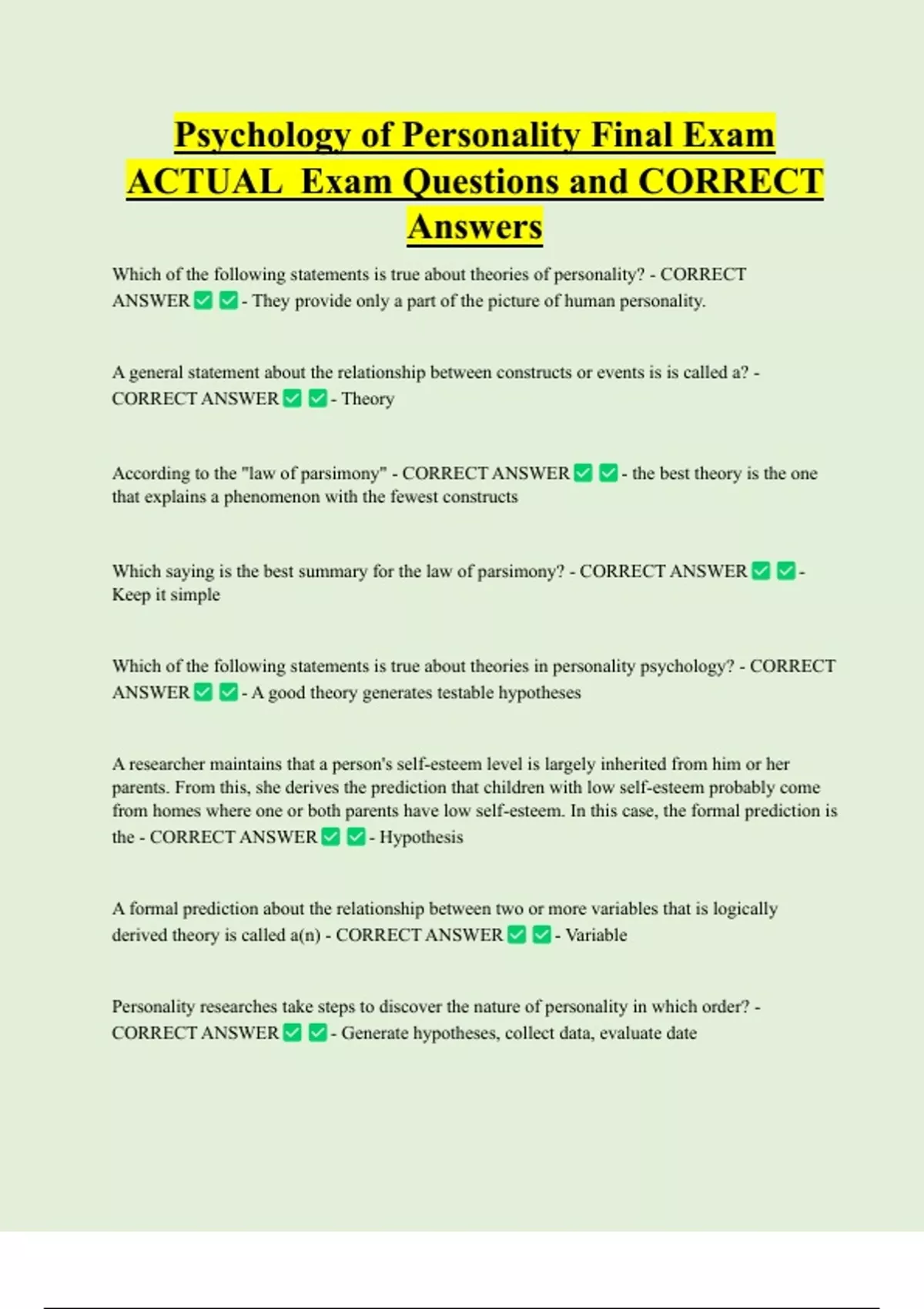ACTUAL Exam Questions and CORRECT