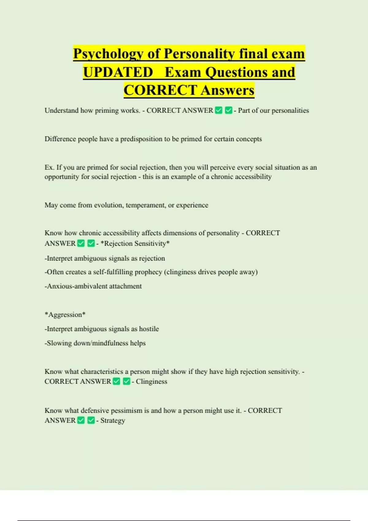 Understand how priming works. - CORRECT ANSWER - Part of our personalities