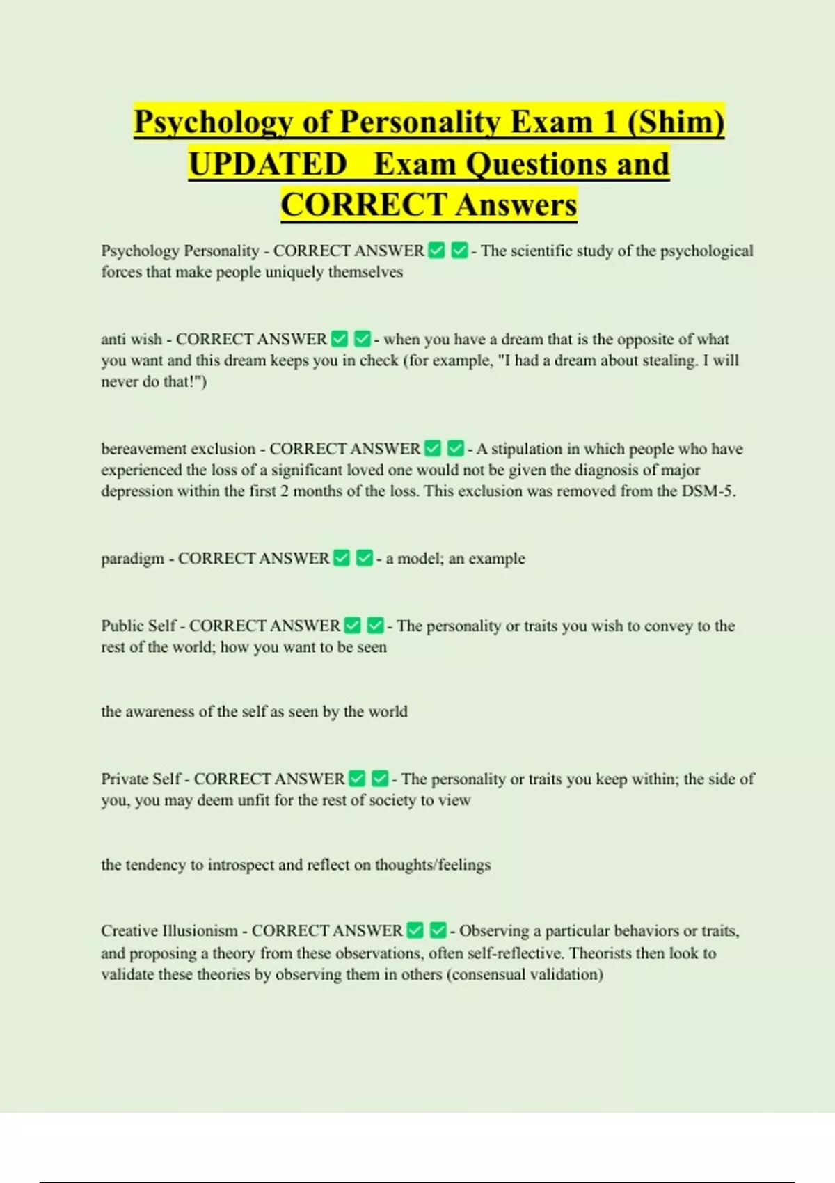 Psychology Personality - CORRECT ANSWER - The scientific study of the psychological