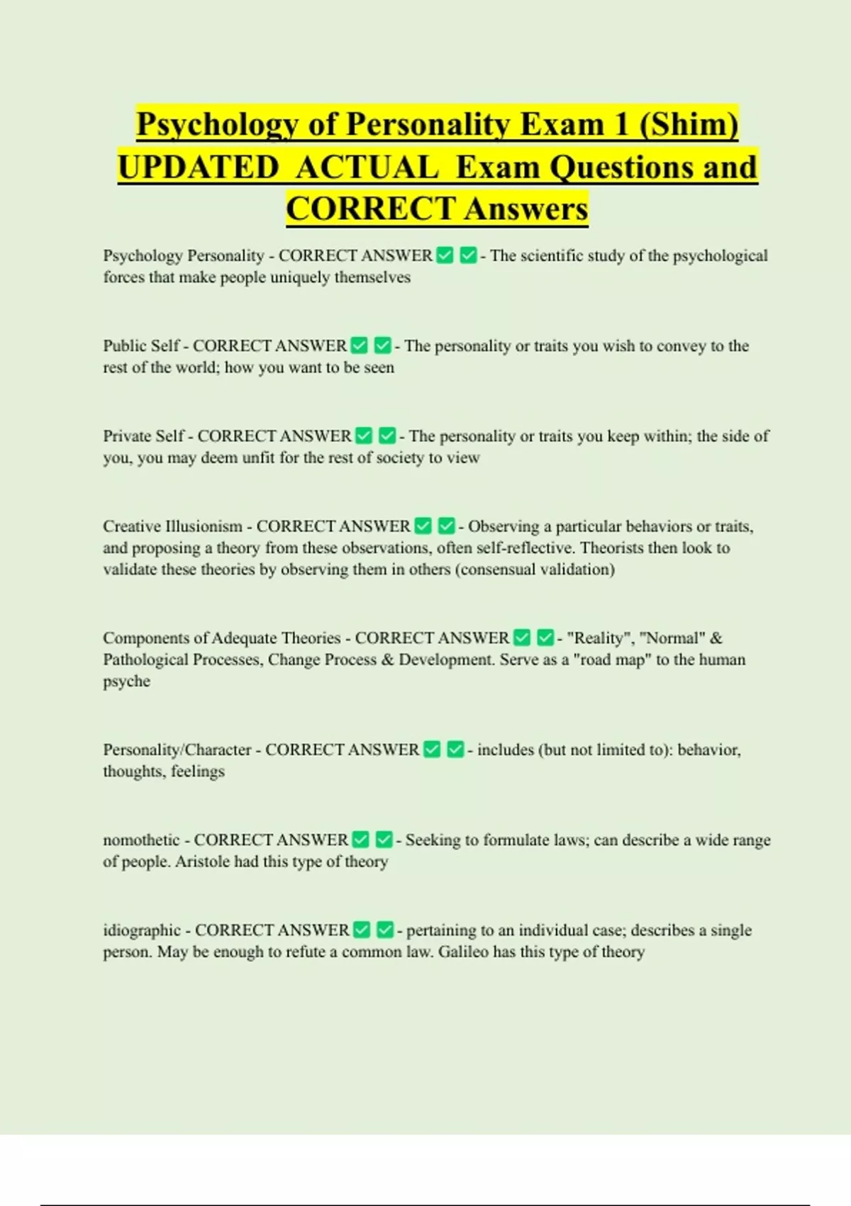 Psychology Personality - CORRECT ANSWER - The scientific study of the psychological