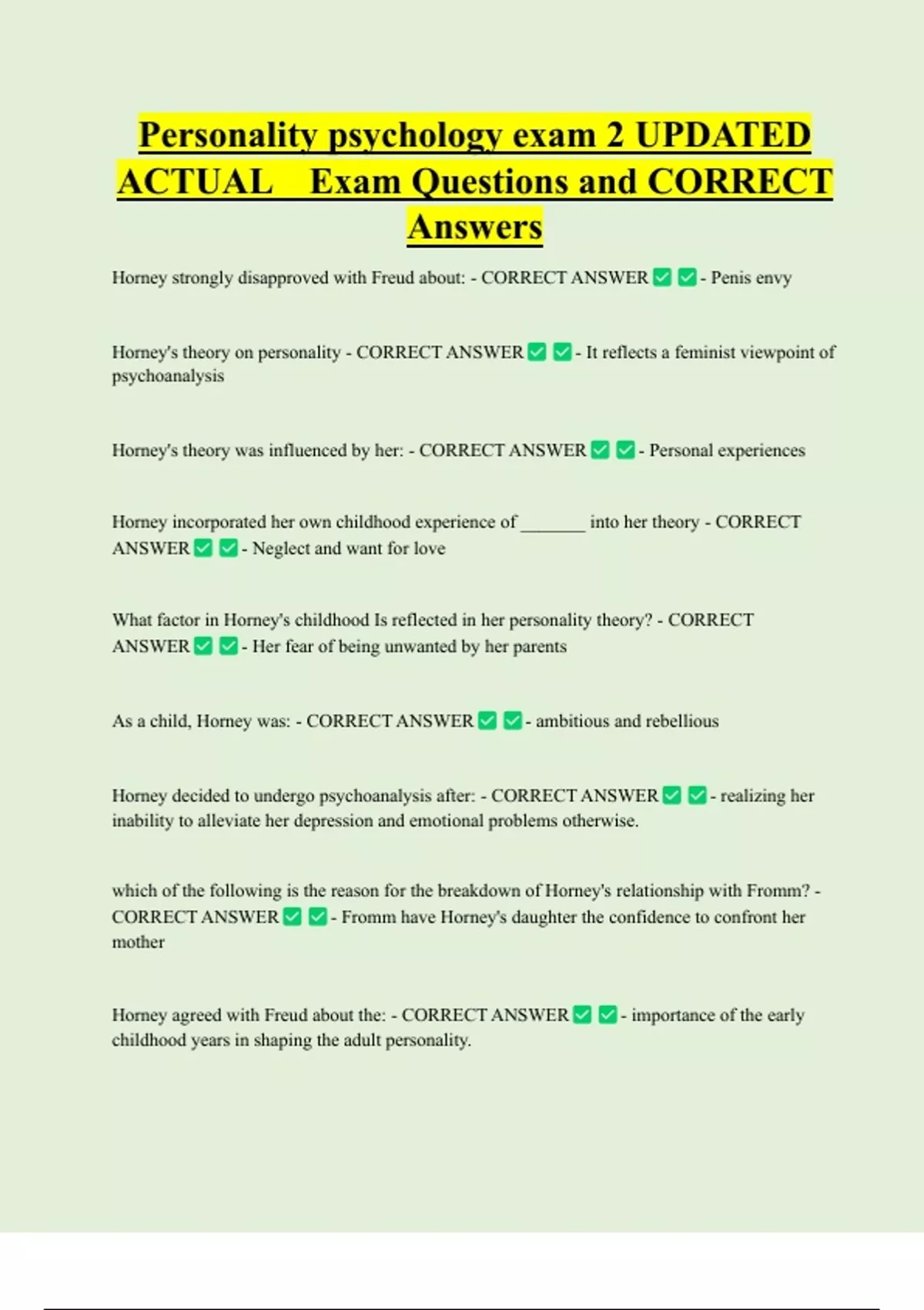 Horney's theory was influenced by her: - CORRECT ANSWER - Personal experiences