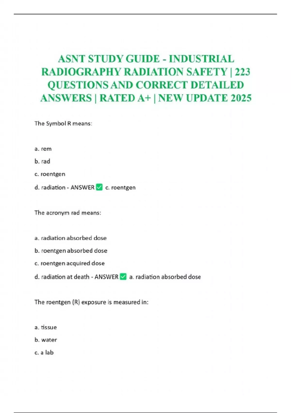 ASNT STUDY GUIDE - INDUSTRIAL RADIOGRAPHY RADIATION SAFETY | 223 QUESTIONS AND CORRECT DETAILED ANSWERS | RATED A+ | NEW UPDATE 2025