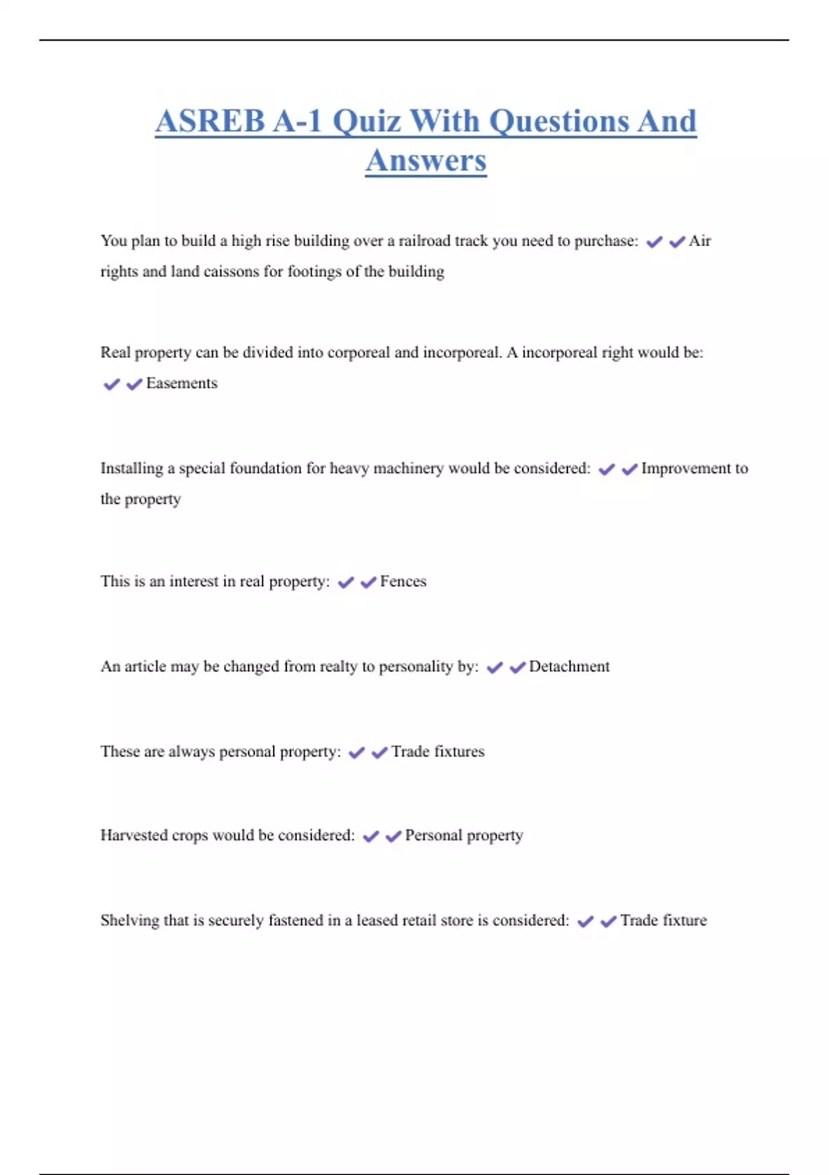 Harvested crops would be considered: Personal property
