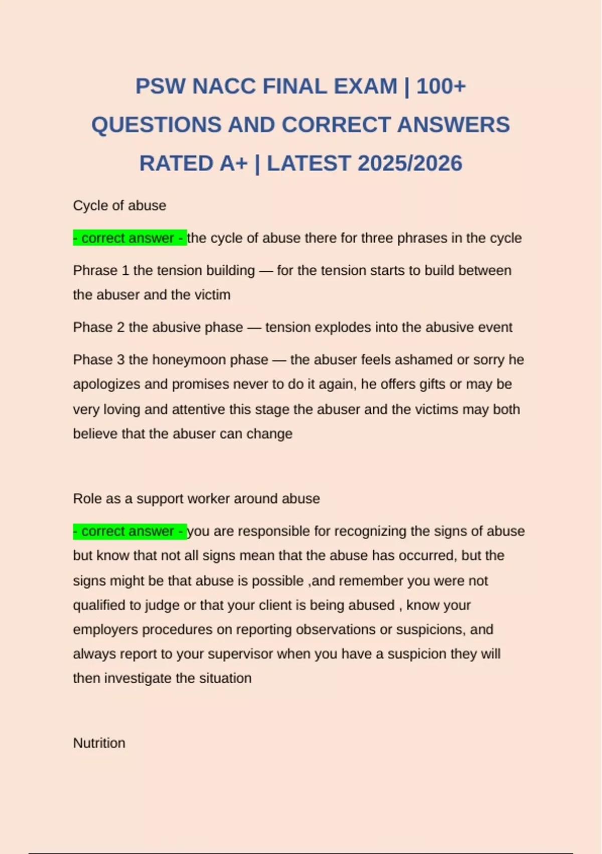 PSW NACC FINAL EXAM | 100+