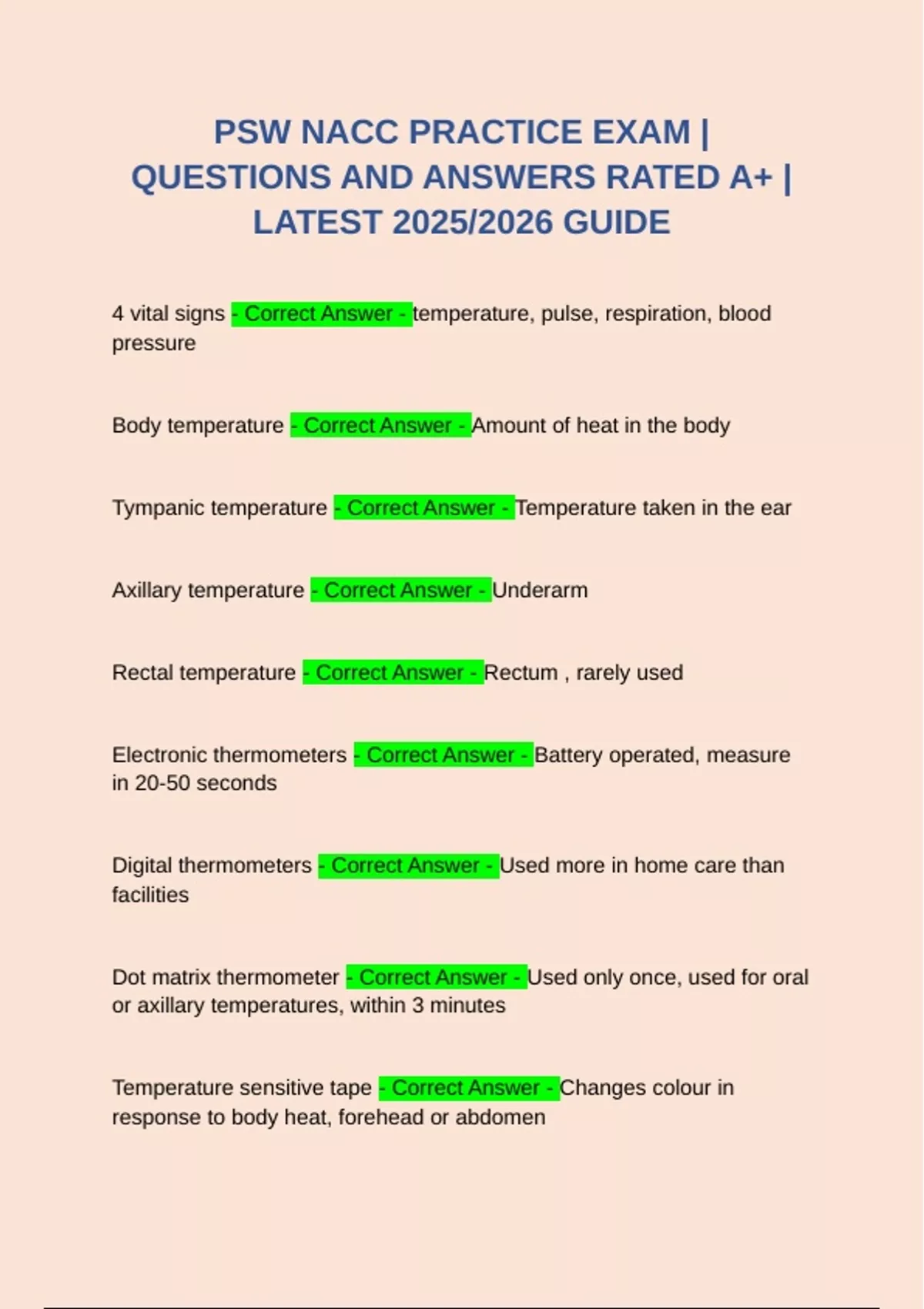 PSW NACC PRACTICE EXAM | QUESTIONS AND ANSWERS RATED A+ | LATEST 2025/2026 GUIDE