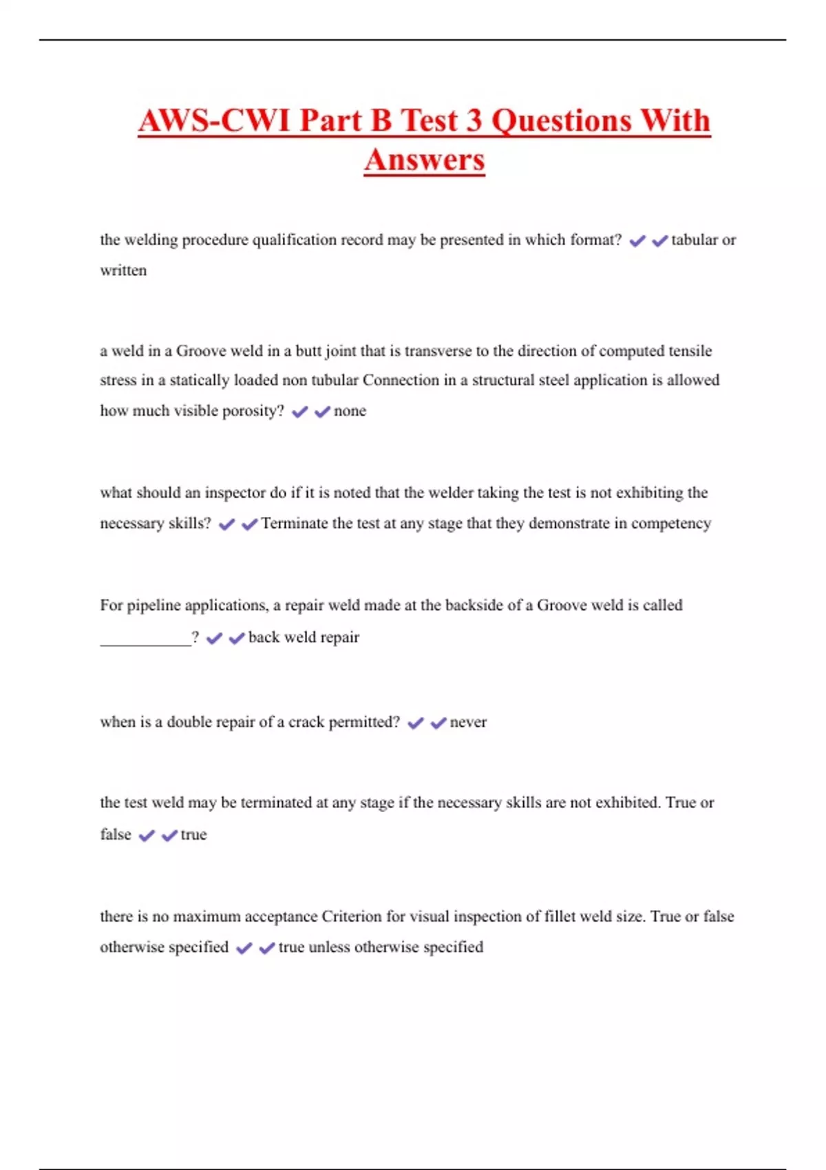 the test weld may be terminated at any stage if the necessary skills are not exhibited. True or