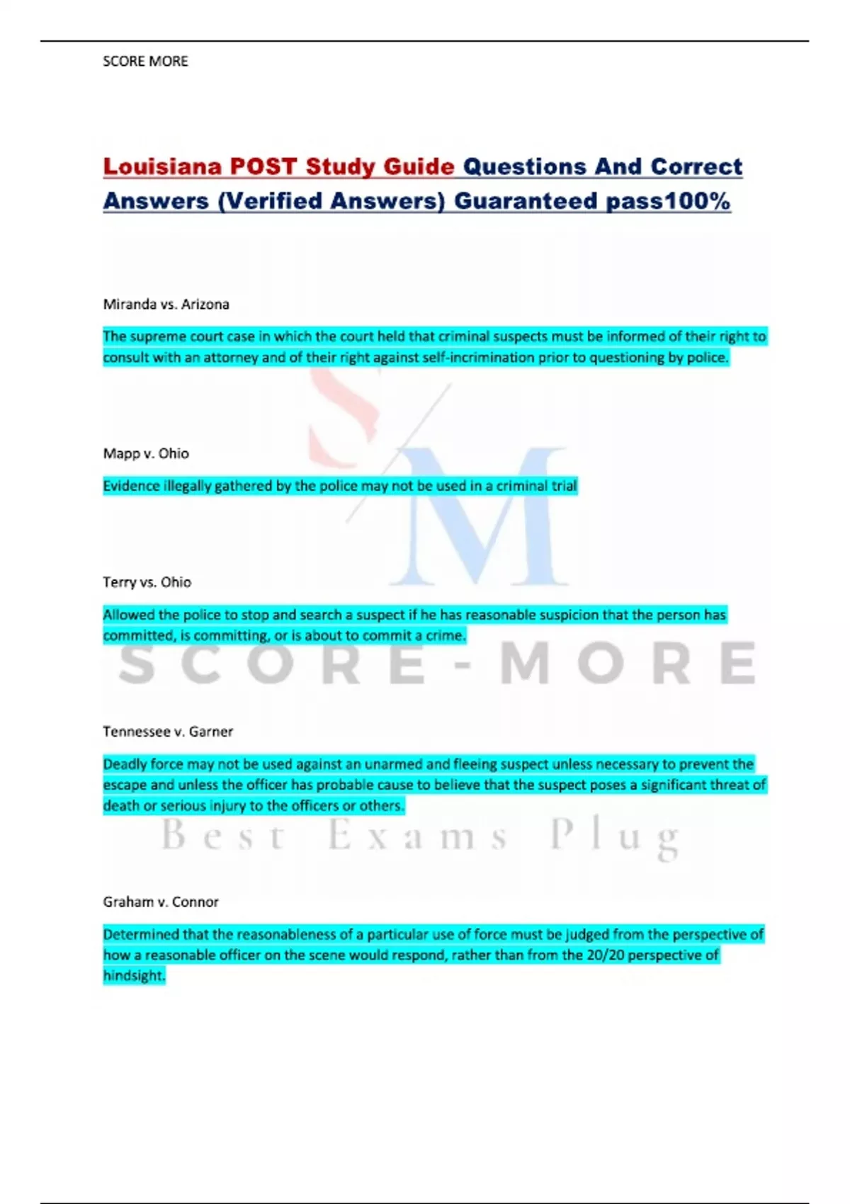 Louisiana POST Study Guide Questions And Correct Answers (Verified Answers) Guaranteed pass100%