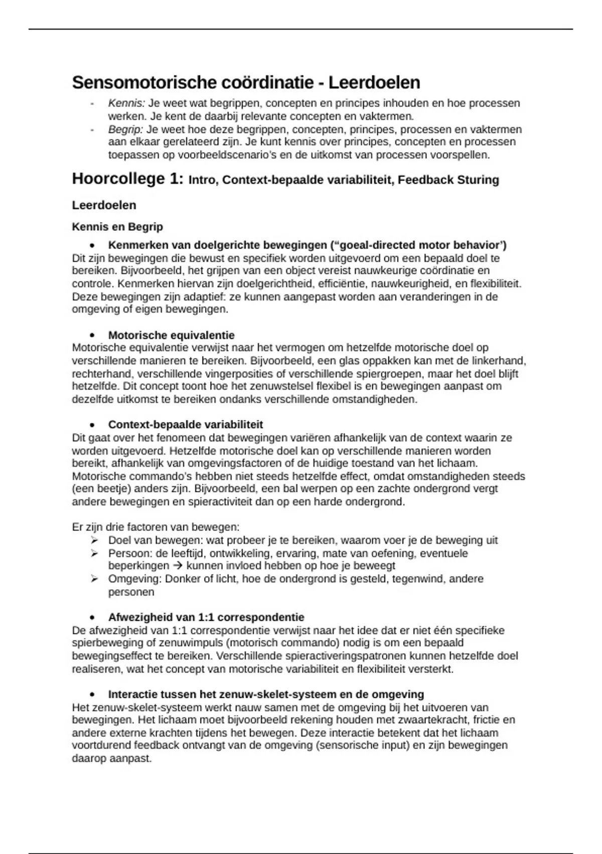 Hoorcollege 1: Intro, Context-bepaalde variabiliteit, Feedback Sturing