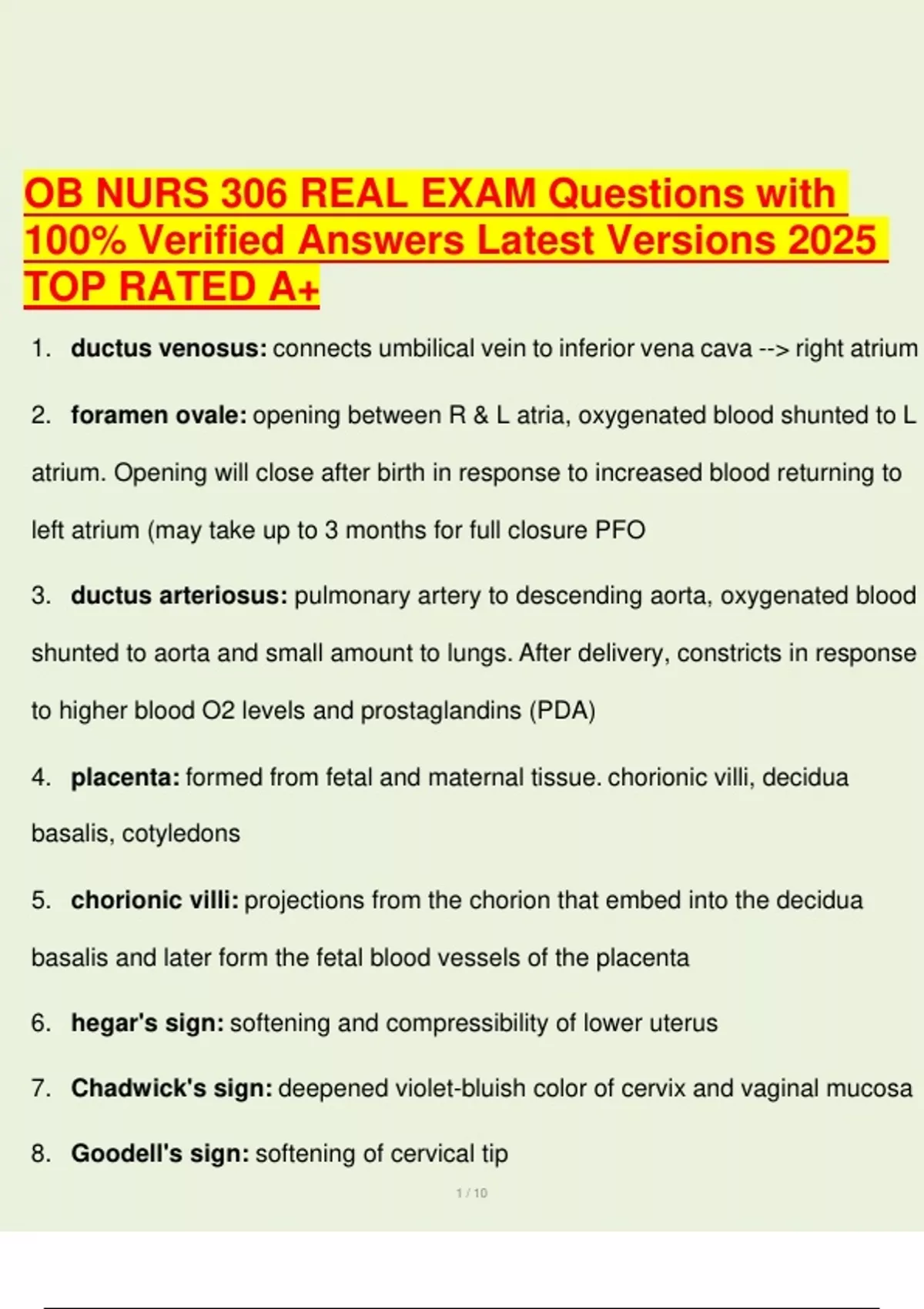 OB NURS 306 REAL EXAM Questions with 100% Verified Answers Latest Versions 2025 TOP RATED A+