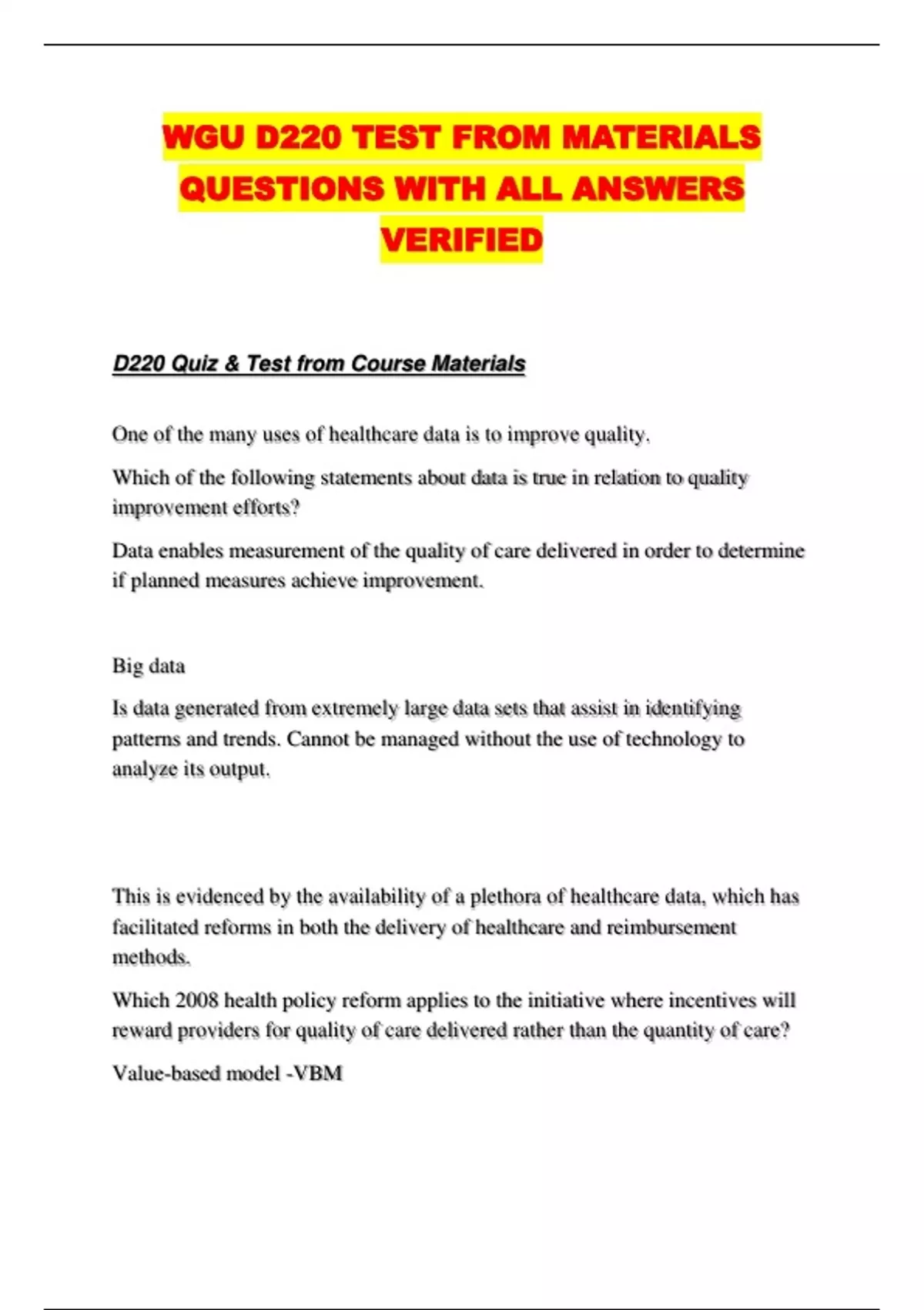 WGU D220 TEST FROM MATERIALS